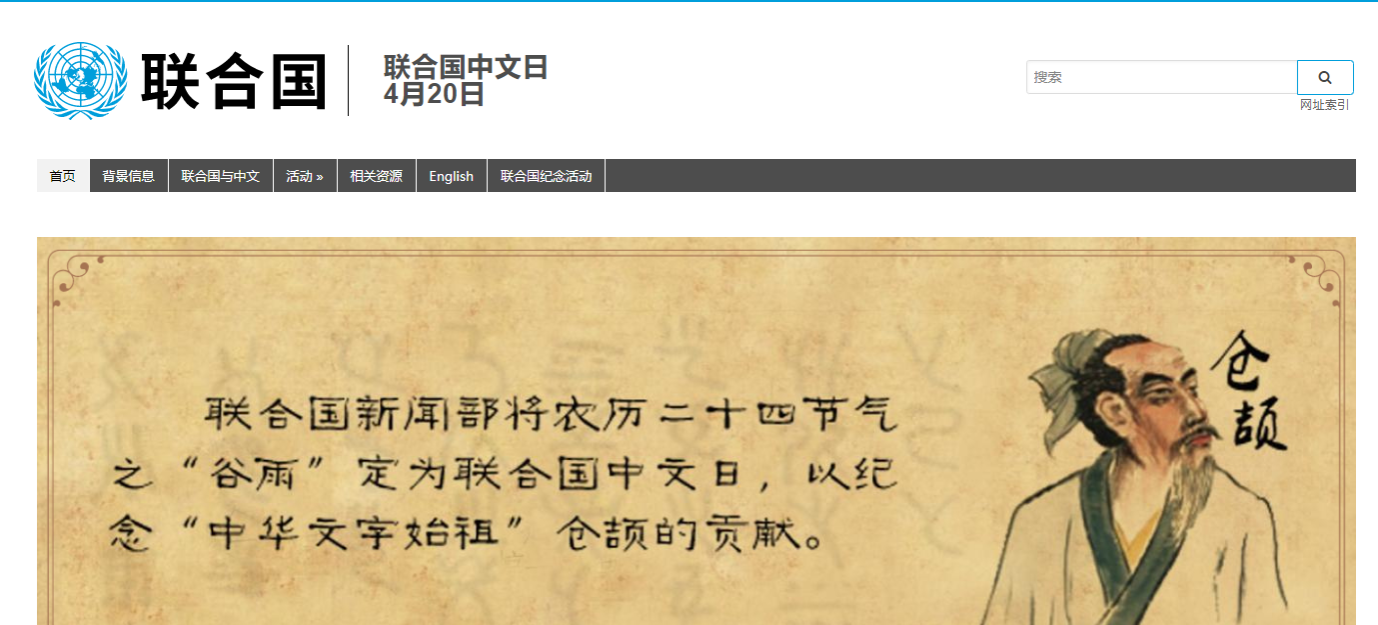 今年4月20日是第13个联合国中文日。联合国于2010年宣布启动联合国语言日,将农历二十四节气之“谷雨”定为中文日,旨在纪念“中华文字始祖”仓颉造字的贡献,并促进六种官方语言在联合国的平等使用。