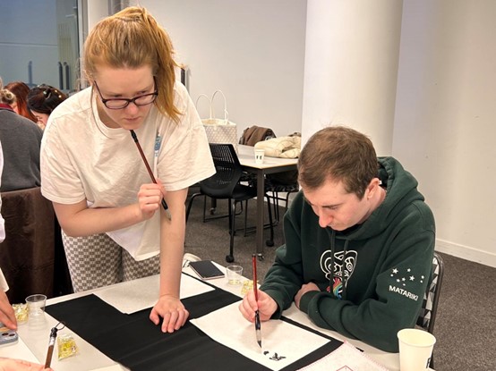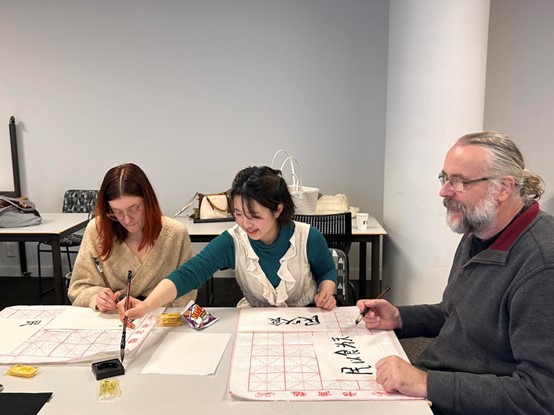 参与者们体验中国书法