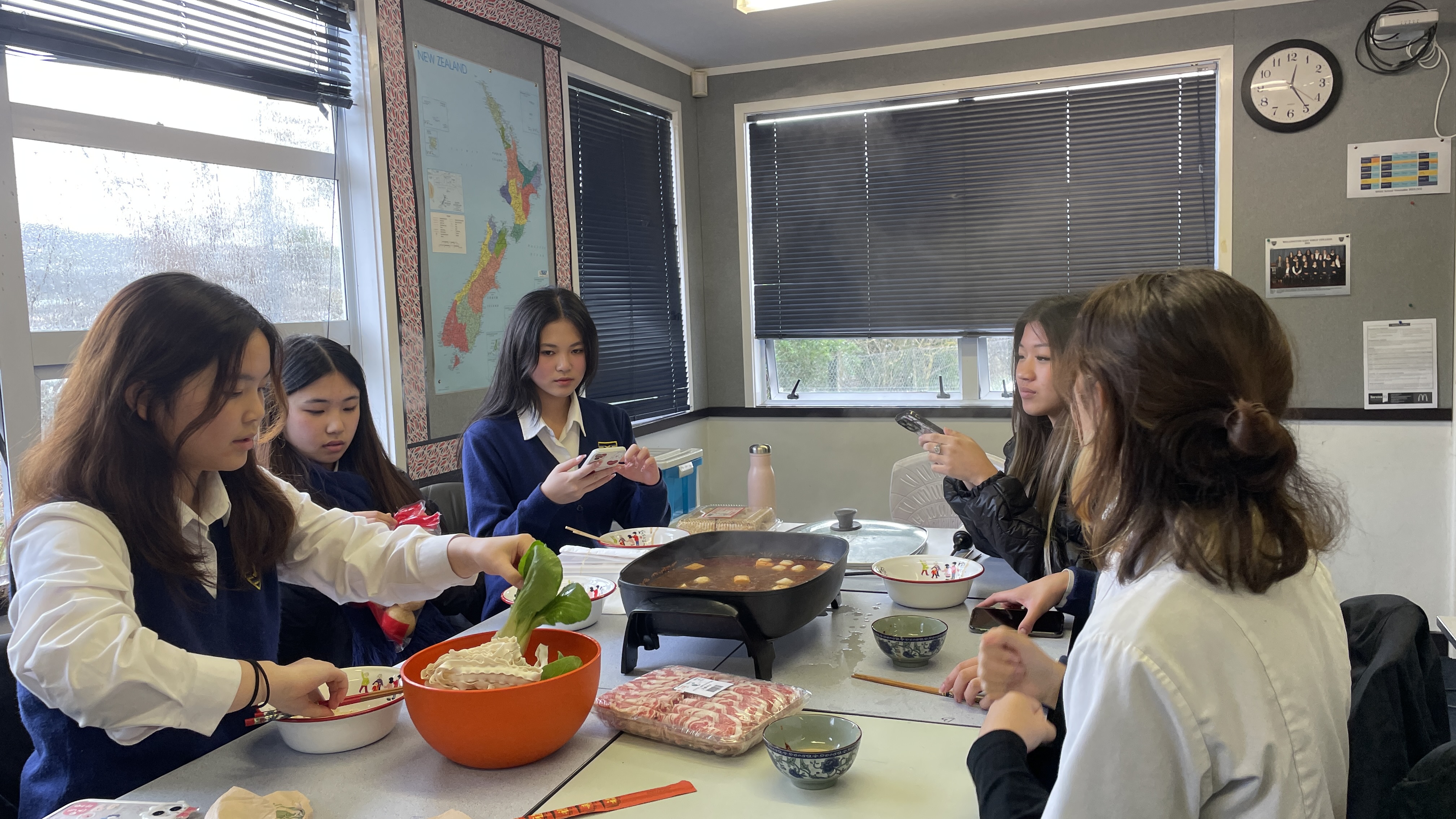当地时间6月6日,学校中文教师扈昕和中文教学志愿者李颖静组织12、13年级中文班的学生们一起享用美味的火锅。火锅是中国饮食文化的重要组成部分。在天气渐凉的深秋,没有什么比热气腾腾的火锅更能点燃大家的热情了。学生们分为六人一组围坐在一起,品尝了地道的中国火锅美食。美食共享,美味同赏,学生们不仅感受到了中国饮食文化的博大精深,还增进了彼此之间的友谊与合作精神。