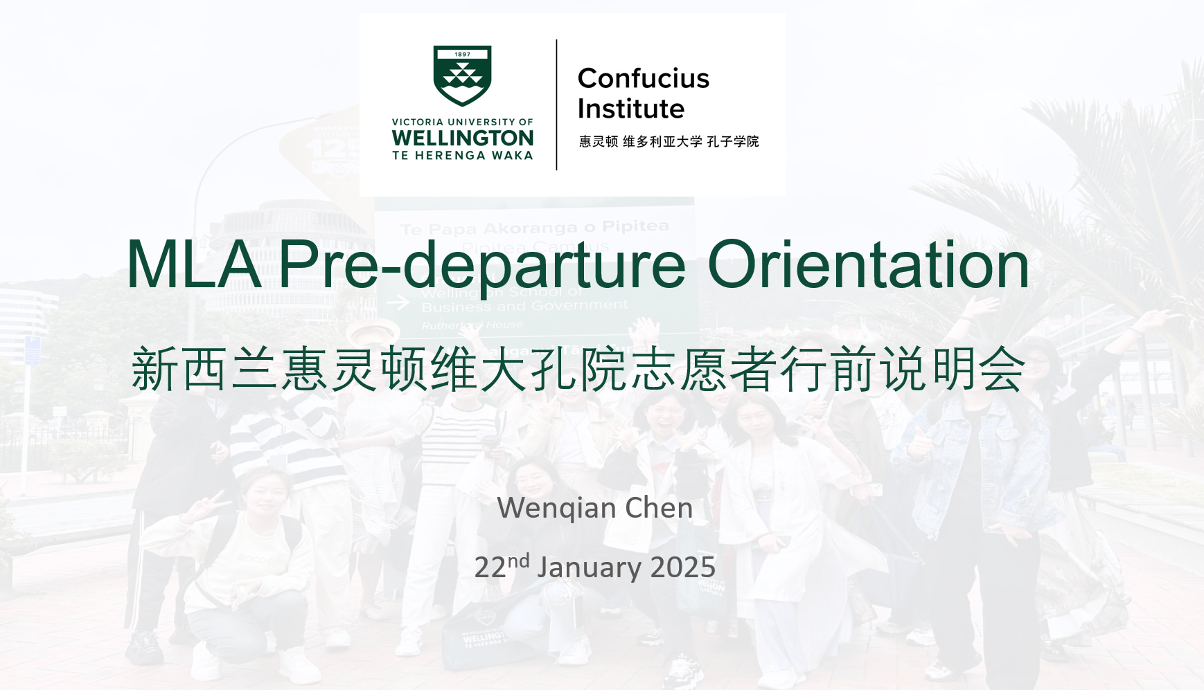 1月22日上午,新西兰惠灵顿维多利亚大学孔子学院通过线上会议的形式,顺利召开了2025年国际中文教育志愿者行前说明会。孔院中方院长陈雯,中文教师兼志愿者管理教师陈文倩、周志香、康国旗以及24名即将赴任的国际中文教育志愿者共同参加。