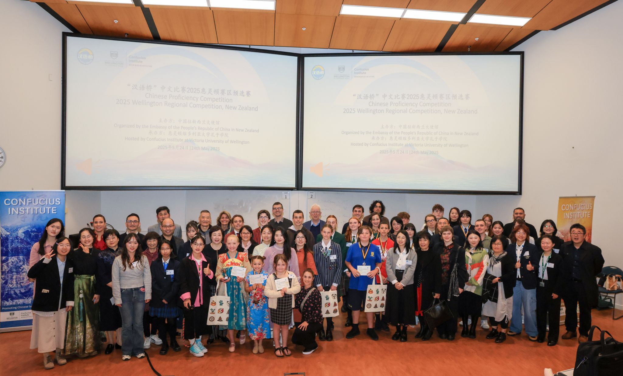 当地时间5月24日,由中国驻新西兰大使馆主办、惠灵顿维多利亚大学孔子学院承办的第24届“汉语桥”世界大学生中文比赛暨第18届“汉语桥”世界中学生中文比赛暨第5届“汉语桥”世界小学生中文秀惠灵顿赛区决赛在惠灵顿维多利亚大学皮皮缇亚校区(Pipitea Campus)落幕。中国驻新西兰大使馆教育参赞唐筠女士、前新西兰驻华大使兼原惠灵顿维多利亚大学孔子学院理事长包逸之先生(Tony Browne)、惠灵顿维多利亚大学语言与文化学院白莉民博士等嘉宾出席本次比赛。评审团由汉学专家、资深教师及往届优秀选手组成,涵盖语言教学与文化传播等多个领域。