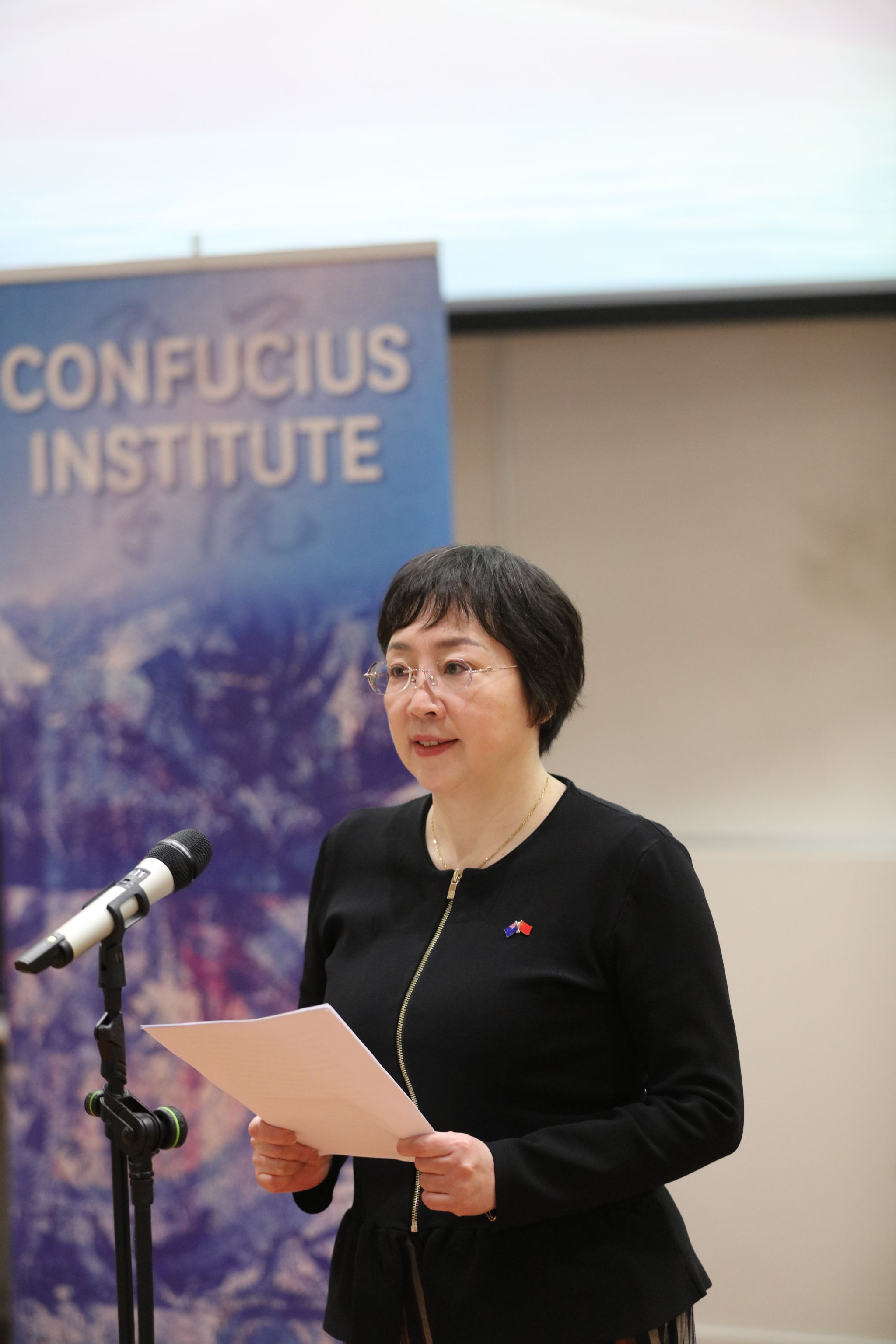 开幕式上,惠灵顿维多利亚大学孔子学院外方院长费安娜(Fiana Mann)致辞。她对所有参赛选手、老师、评委及家长的到来表示热烈欢迎,肯定了大家对中文和中华文化的学习热情。她指出,“汉语桥”不仅是语言学习的平台,更是一座链接中外文化的桥梁,为中文学习者们提供了展示自我、相互交流的机会,并预祝所有参赛选手发挥出色。