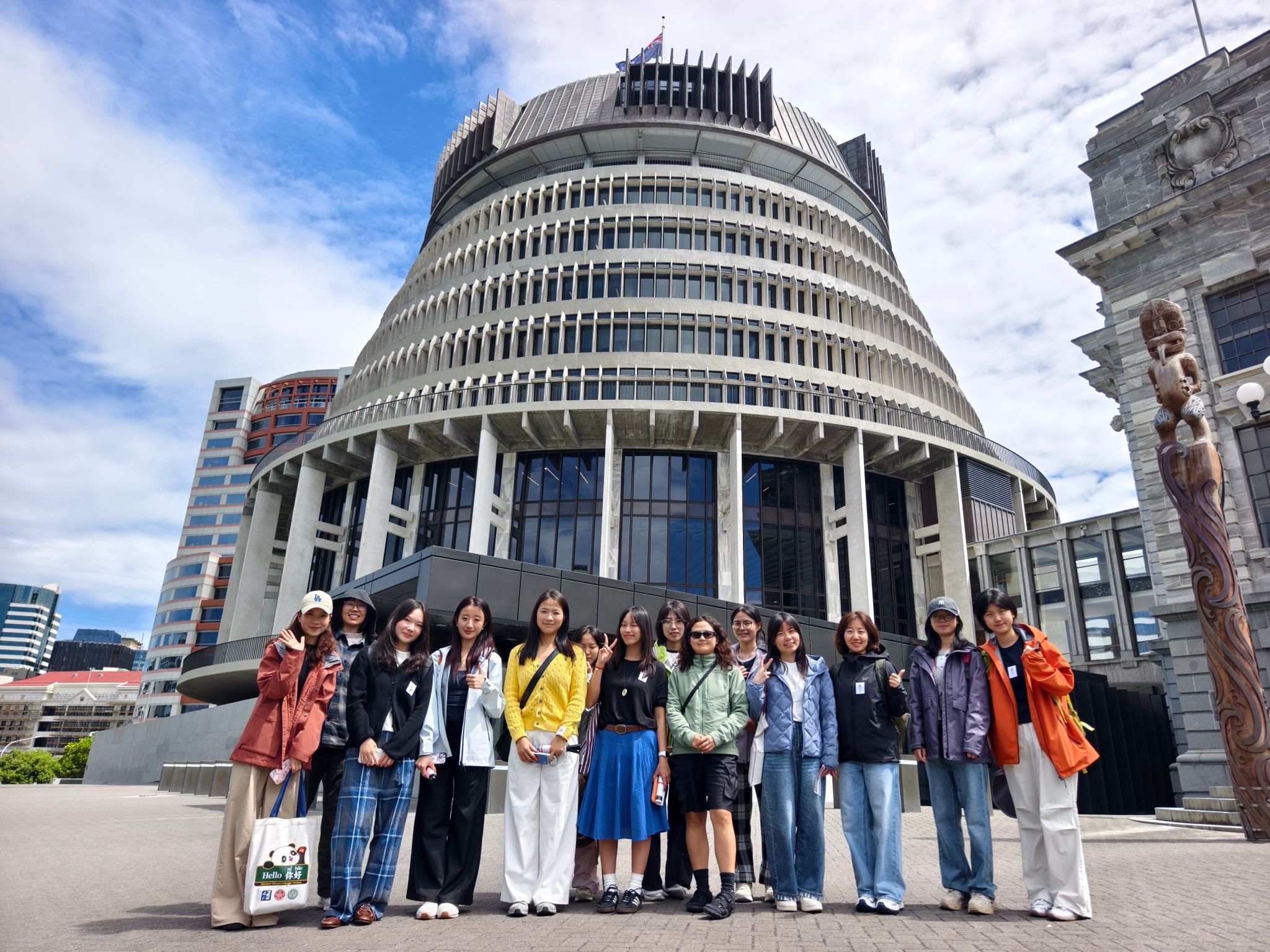文化理解是跨文化教学的前提。此次培训特别设置了丰富的文化体验环节。志愿者们走进毛利文化建筑,在维多利亚大学 特瓦卡·阿·毛伊(Te Waka a Māui)学院院长迈克·罗斯(Mike Ross)的带领下,深入学习毛利文化的核心内涵与传统礼仪,为未来在跨文化语境下开展中文教学积累宝贵文化体验与沟通经验。培训期间,志愿者们还分组参观了新西兰议会大厦,在专业向导的讲解下了解了新西兰的政治体制与议会文化;并前往蒂帕帕国家博物馆(Te Papa Tongarewa),通过文物、艺术品与多媒体展示,全方位探索新西兰的自然历史与人文风貌,进一步加深对当地多元文化的认知。此外,孔院外方院长费安娜(Fiona Mann)带来的“理解新西兰文化”(Understanding Kiwis)主题分享,生动解析了新西兰本土文化特质,帮助志愿者们快速拉近与当地社会的心理距离。