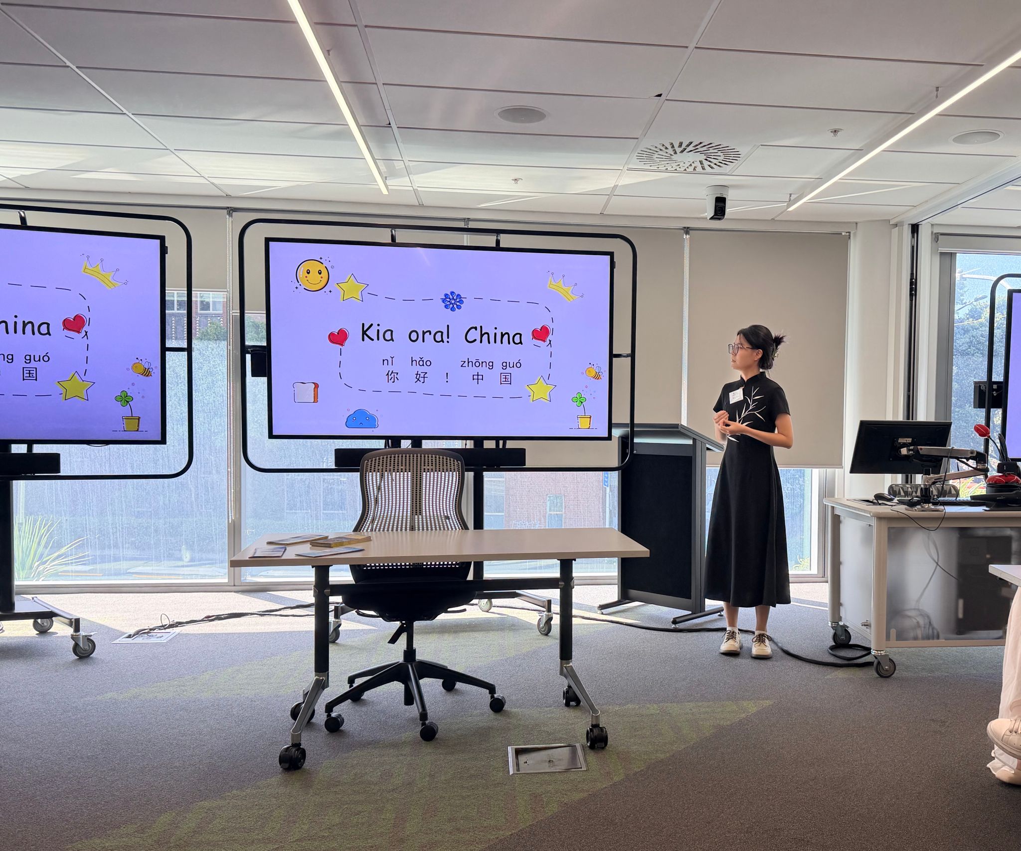 教学技能提升是本次入职培训的核心内容。维大孔院邀请多位资深教育专家与一线教师,针对海外中文教学的关键环节展开专题指导。资深中文教师李莹深入浅出地讲解了语言课程的设计方法,为志愿者们搭建起科学的教学框架;孔院国际中文教育志愿者项目主管帕特里夏·罗什(Patricia Roche)聚焦课堂管理痛点,分享了新西兰中小学课堂的实用管理技巧,助力志愿者应对海外教学中的常见挑战。斯考特学校中文教师杨庆详细介绍了新西兰国家教育成就证书(NCEA)课程体系中中文教学的定位与实施路径;惠灵顿中学的喻丰老师则分享了高中中文教学与教师专业发展的相关经验。此外,孔院教师周志香与康国旗老师带领志愿者们分阶段完成教案设计与课堂演示,从教学目标设定到教学活动编排进行全程指导,并通过孔院教学资源分享,拓宽志愿者的教学素材选择视野。