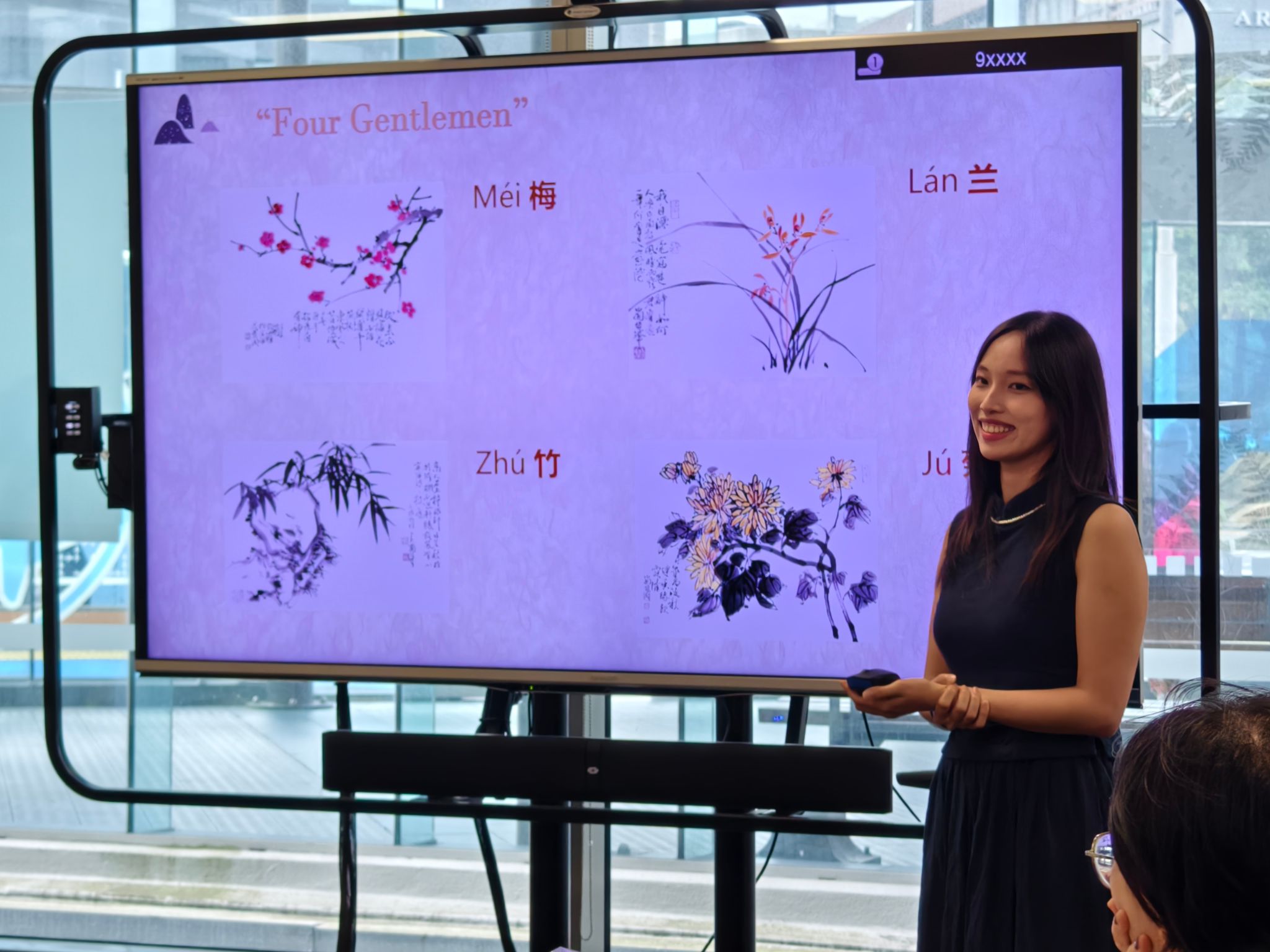 活动还特别聚焦于“四君子”之一——梅花。志愿者生动讲解了梅、兰、竹、菊在中国传统文化中所承载的高洁品格与精神象征,并带领大家学习诵读北宋文学家王安石的名篇《梅花》。在朗朗诗声中,大家一同感受梅花凌寒独放、不畏艰难的品格。