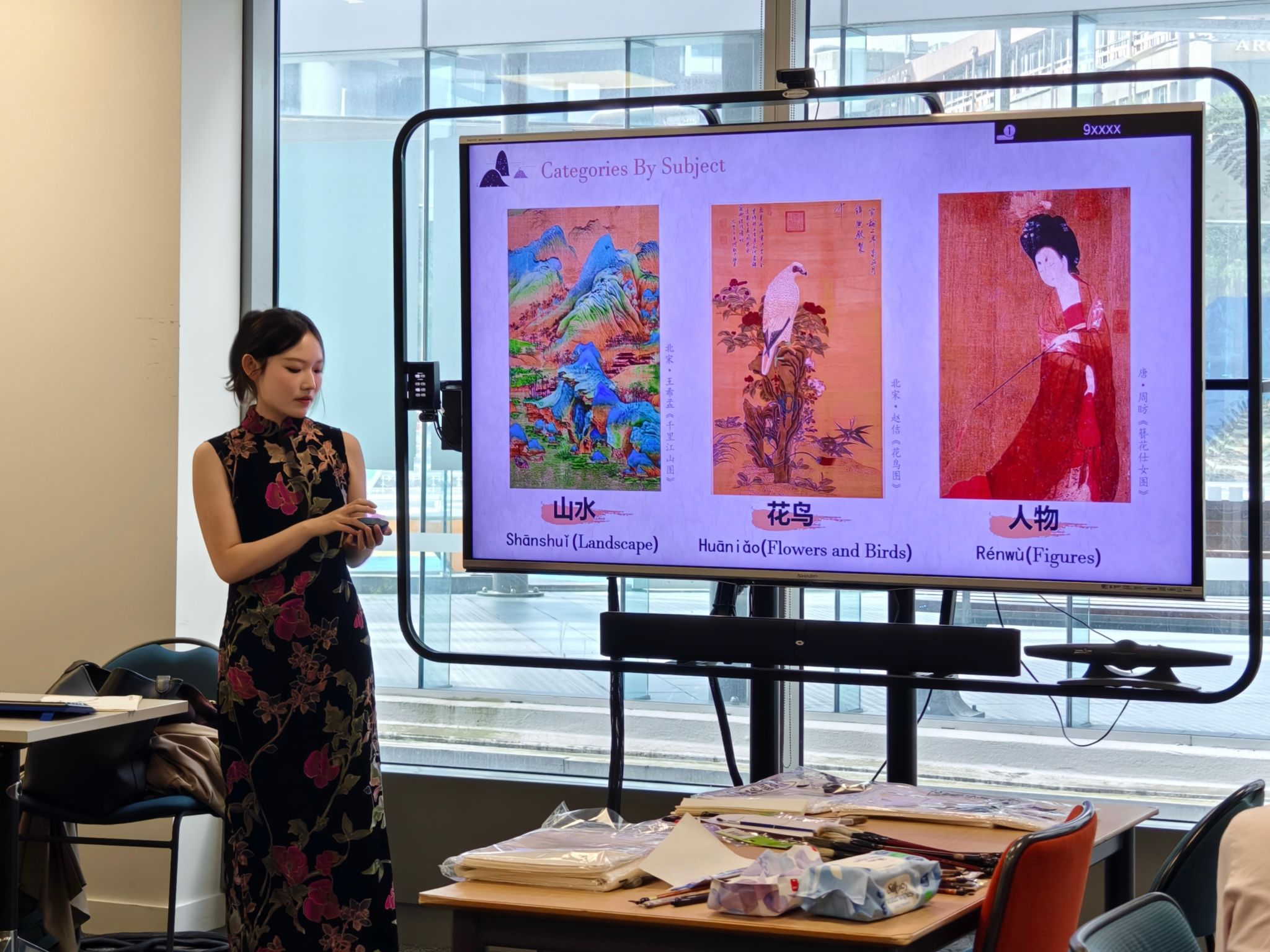 在文化介绍部分,活动重点讲解了中国画的基本种类,涵盖人物、山水、花鸟等主要门类,帮助大家建立起对中国画的整体认知。随后,参与者们围绕中国画与西方画的异同展开了热烈讨论。从审美理念、技法表现到空间处理,大家各抒己见,在交流中碰撞出思想的火花。通过这样的互动探讨,参与者进一步理解了中国画所追求的“写意”精神与“意境”之美。