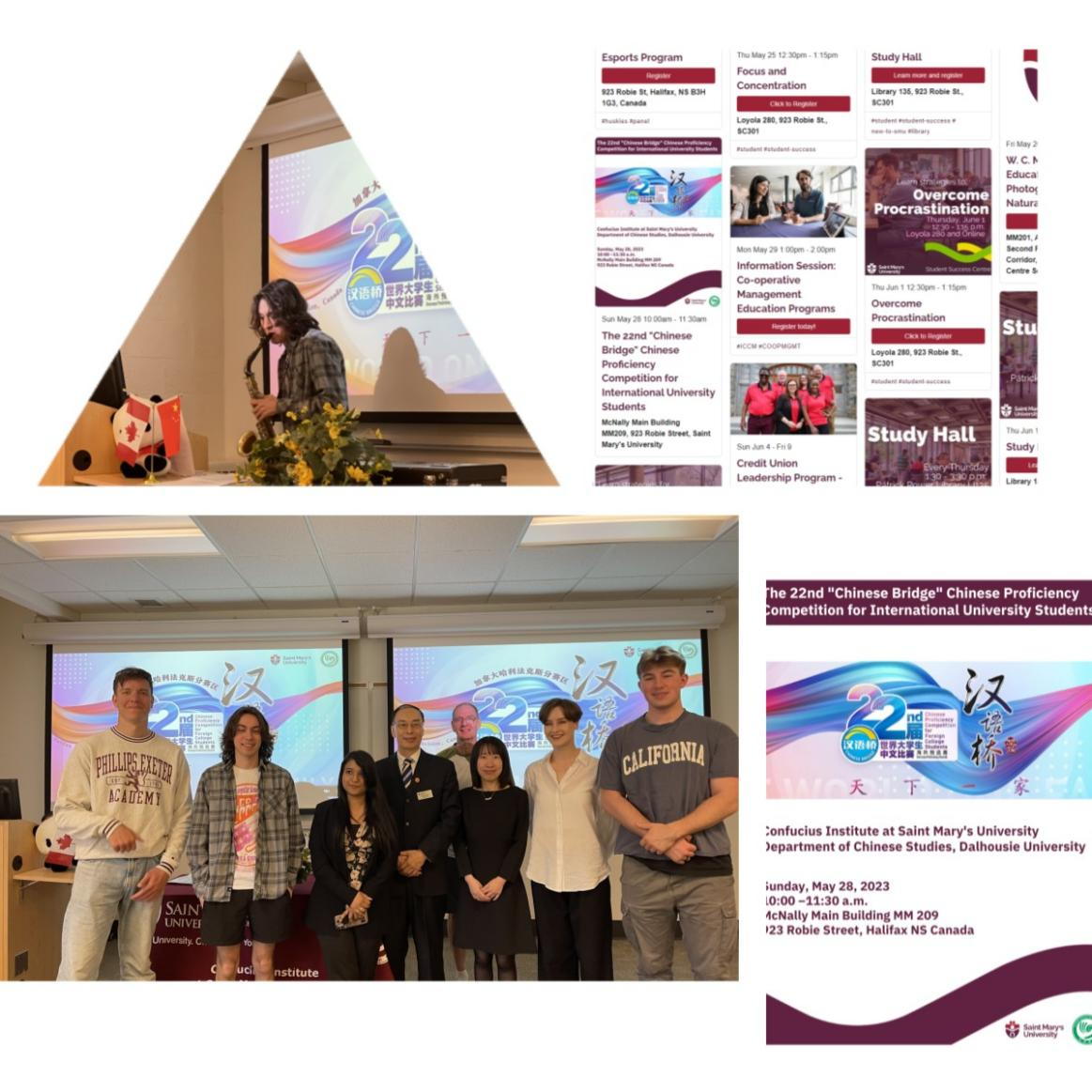当地时间5月28日,由教育部中外语言交流合作中心、中国驻加拿大大使馆主办,加拿大圣玛丽大学孔子学院承办的第22届世界“汉语桥”世界大学生中文比赛海外预赛——加拿大新斯科舍省赛区的比赛顺利完成。今年“汉语桥”世界大学生中文比赛的主题仍然是“天下一家”。来自大西洋新斯科舍省的戴尔豪斯大学(Dalhousie University)、开普敦大学(Cape Breton University)、圣玛丽大学(Saint Mary’s University)等高校的大学生参加了这次比赛。
