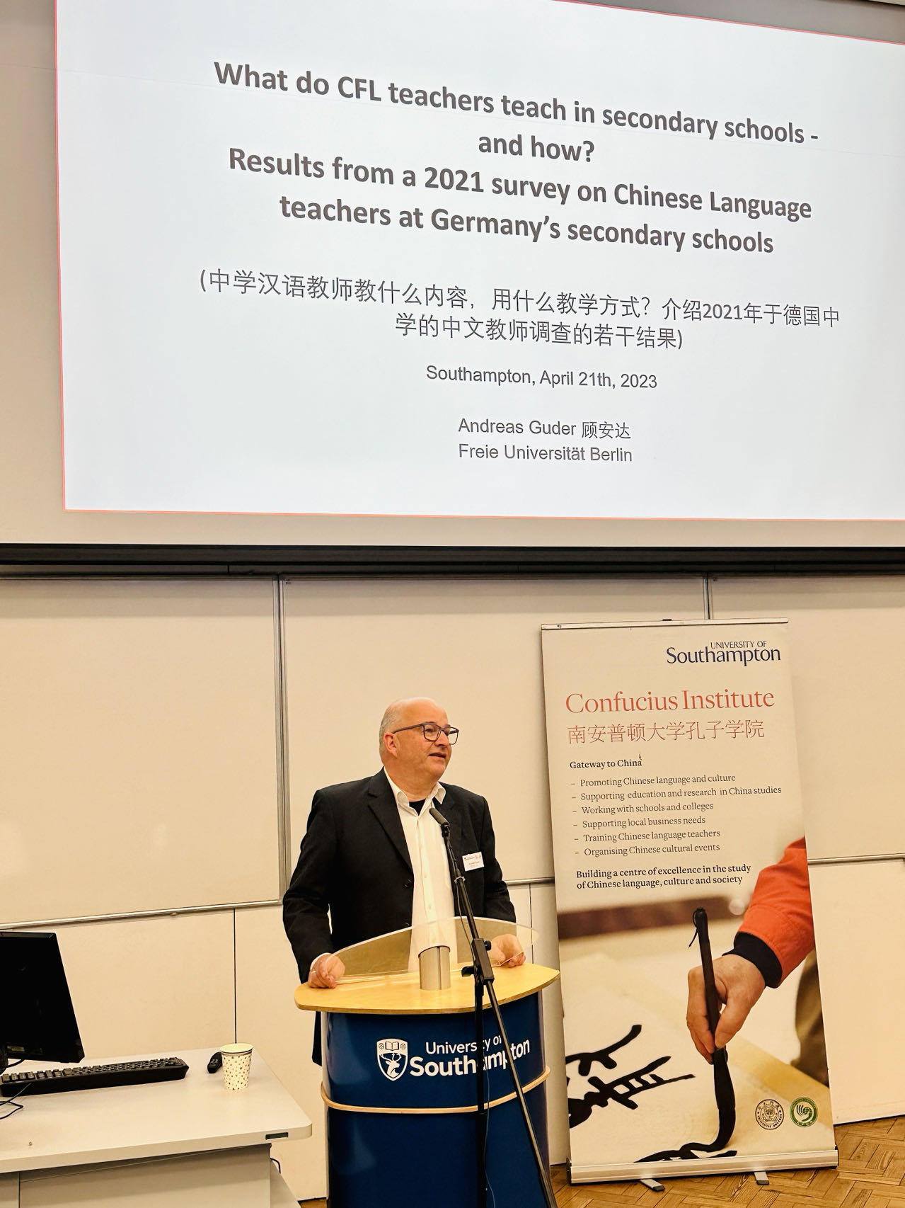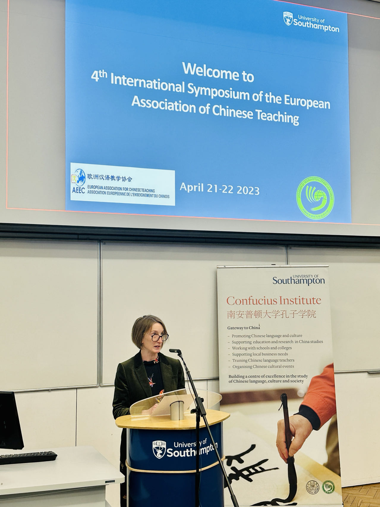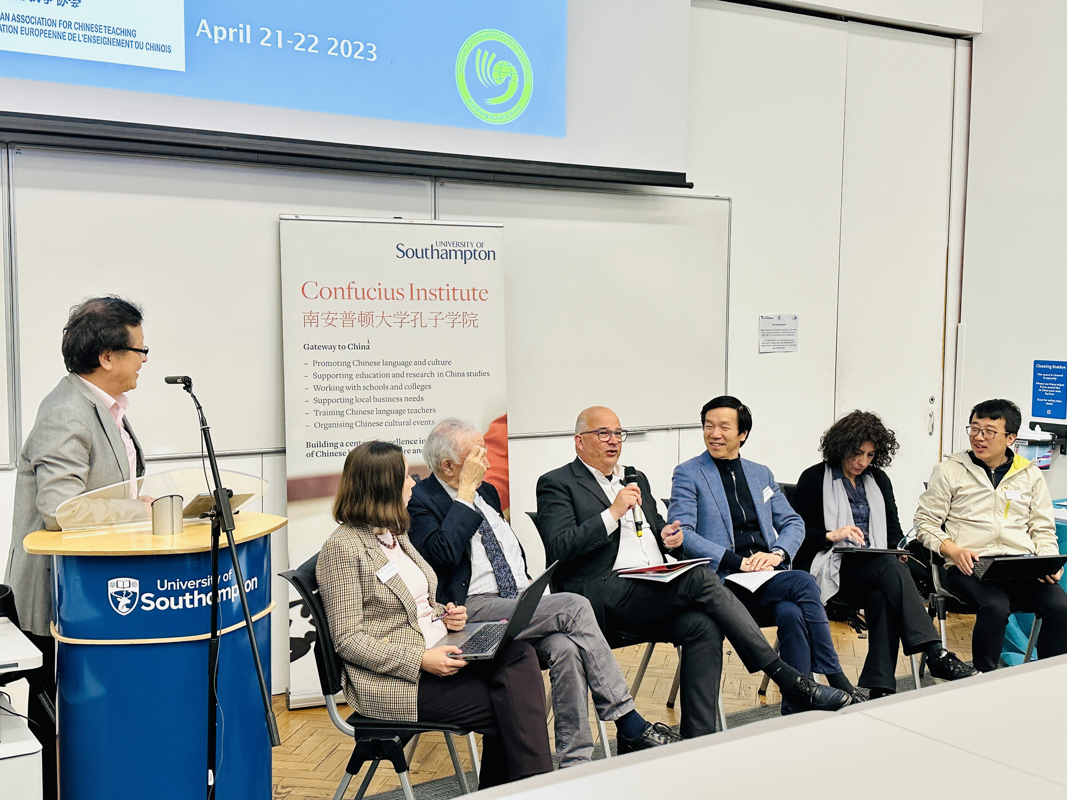 当地时间4月21日至22日,欧洲汉语教学协会(以下简称欧汉会,EACT)第四届国际研讨会在英国南安普顿大学举行。本届国际研讨会由欧汉会主办,南安普顿大学、南安普顿大学孔子学院承办,英国汉语教学研究会(BCLTS)参与协办。来自中国、越南、韩国、德国、法国、意大利、西班牙、葡萄牙、匈牙利、罗马尼亚、保加利亚、英国、美国等世界各地百余名专家学者共聚一堂,进行学术交流,其中包括欧汉会会长、法国前汉语教学总督白乐桑教授,欧汉会张新生、牧晨曦、周敏康三位副会长,以及来自德国的顾安达教授、越南的阮黄英教授、中国的吴勇毅教授、美国的梁霞教授、意大利的马西尼教授等。