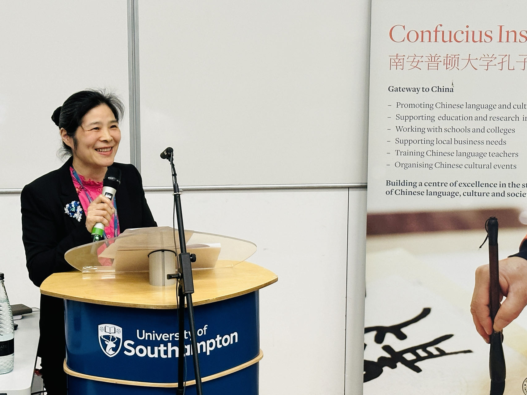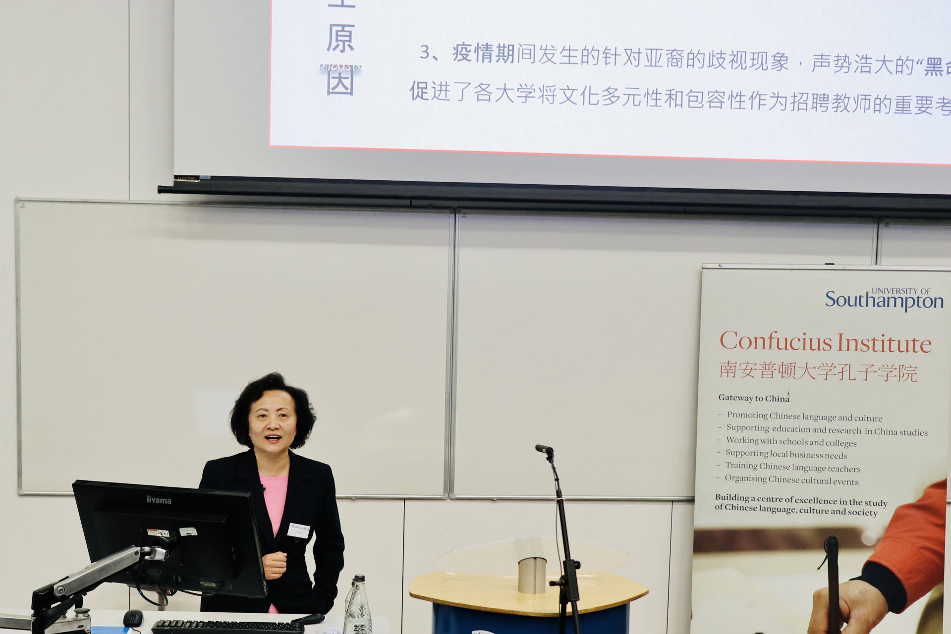 会议开幕式由欧汉会副会长张新生教授主持。南安普顿大学人文学院分管国际事务副院长Bryony Whitmarsh教授首先代表人文学院对与会代表表达了热烈欢迎。南安孔院英方院长郑英博士代表承办方南安孔院致欢迎辞,郑英提到,这是自疫情以来南安孔院举办的第一场大型线下学术研讨会,兼采线上模式,便于世界各地无法现场与会的代表参加研讨,使学术盛宴的受众面实现最大化。白乐桑教授代表欧汉会致辞,对会议的召开表示祝贺,并结合自己的汉语教育及研究经历,阐述了国际汉语教育的重要性及未来发展的方向。