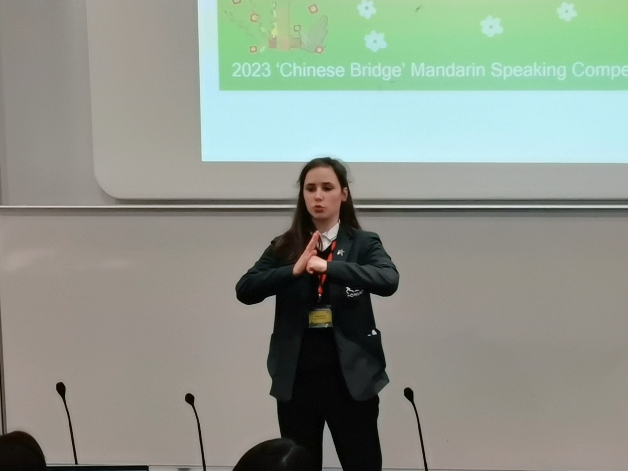 当地时间5月5日,南安孔院下设孔子课堂博航特利普胡克学校(Bohunt School Liphook)的六位学生在张栢荣、张卓君和吕爻三位老师的带领下,一同赴伦敦大学亚非学院参加2023“汉语桥”中学生中文演讲比赛全英大赛(2023‘Chinese Bridge’Mandarin Speaking Competition for UK Schools)。六位学生在比赛中以精彩的表现赢得了在场评委和观众热烈的掌声,给大家留下了非常深刻的印象。其中,八年级的David Clinciu和九年级的Miroslava Lindsay分别获得个人赛初级进阶组二等奖和中级进阶组二等奖,由九年级的Elizabeth Marshall和十年级的Kitty Kalebka, Sam Viel 和 Edward Hedges四位同学组成的团体,则获得小组赛中级组一等奖。