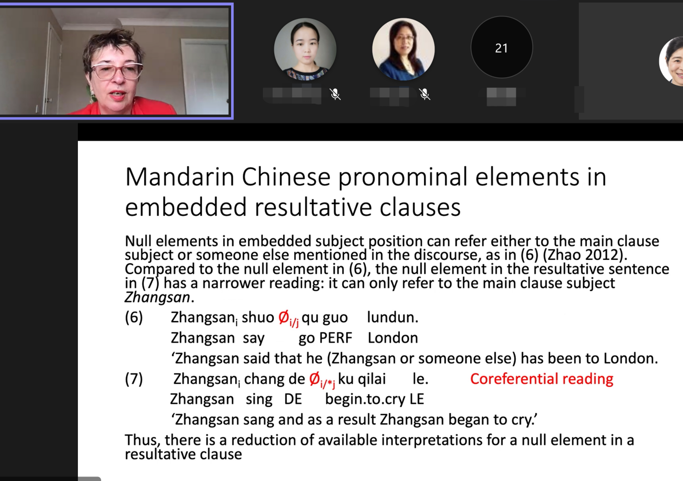 讲座提问环节中,听众就研究样本的特点、未来的研究方向等向Roumyana Slabakova教授提问,教授一一进行了耐心解答,并对孔院的讲座邀请以及课题组其他研究成员表达了感谢。