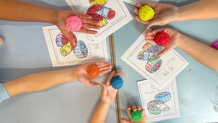 首先康老师让大家通过视频了解中秋节的时间、习俗以及庆祝方式。小朋友通过视频和康老师的讲解了解到阴历和阳历的不同,以及中国人对于团圆的期待。随后小朋友通过康老师的提问了解了后羿射日、嫦娥奔月的故事。接着康老师介绍了月饼的不同种类及制作方式,并现场演示。为了寓教于乐,康老师还精心安排了涂色、写月字、中秋拼图、做月饼等活动让大家来体验中秋文化。