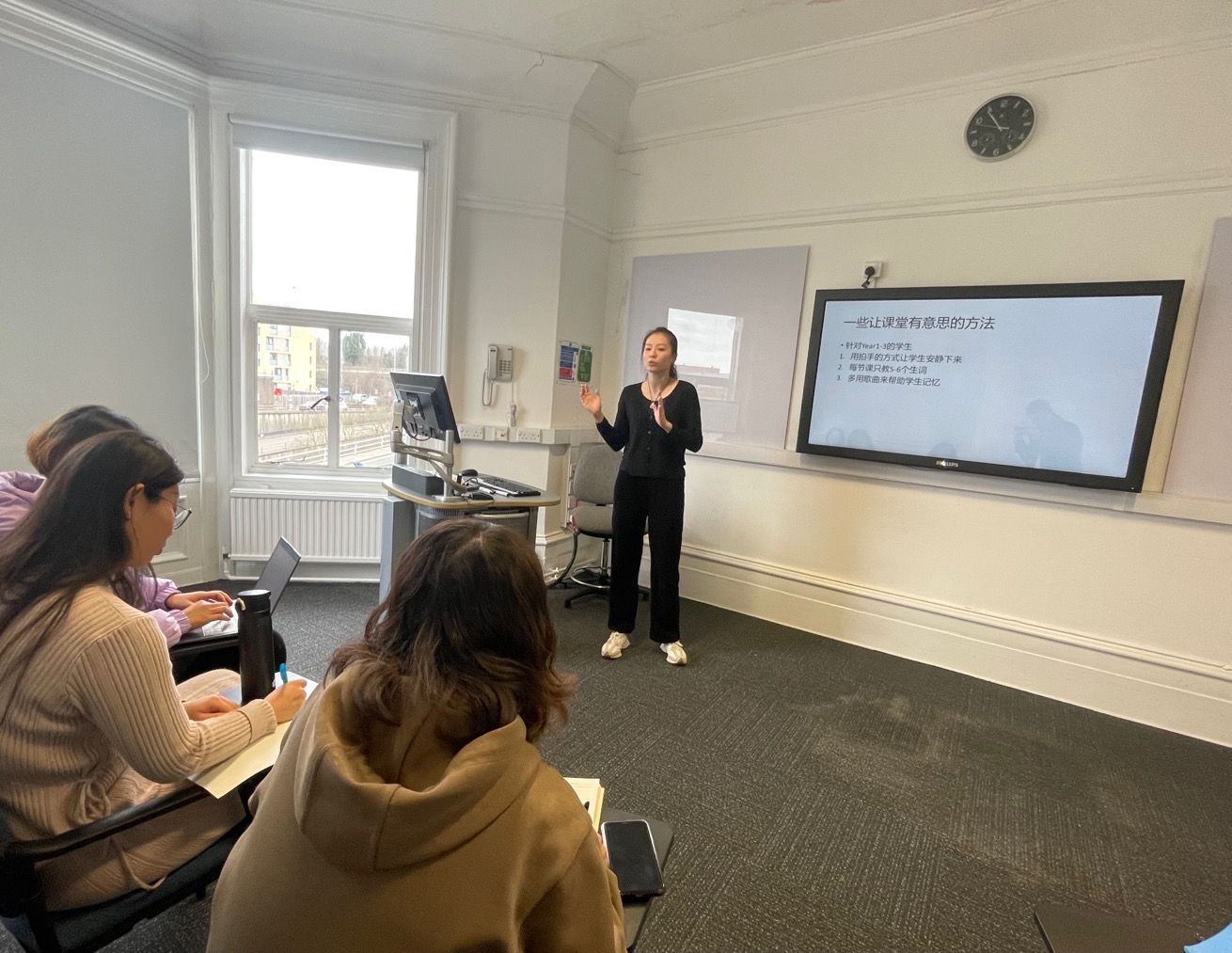 彭升主要介绍了加强低年级课堂管理以及提高学生兴趣和参与度的小妙招,同时还分享了丰富的备课资源。谈晓露则介绍如何在英国当地中小学通过游戏和活动提高汉语教学效果的技巧和方法,同时分享了自制的多种教学用具和使用心得。