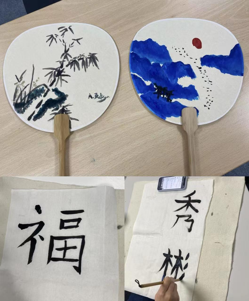 在了解中国书法/绘画的基本知识后,学生们都跃跃欲试。初级班有的学生用毛笔写下自己的中文名字,有的写下“福”字,准备带回布置宿舍;中级班学生自主性更强,在网络上搜索了相关画作进行临摹,通过学习,他们表示中国绘画中的“留白”概念让他们耳目一新。活动结束时,大部分学生都表示希望下学期还能够组织相关活动。
