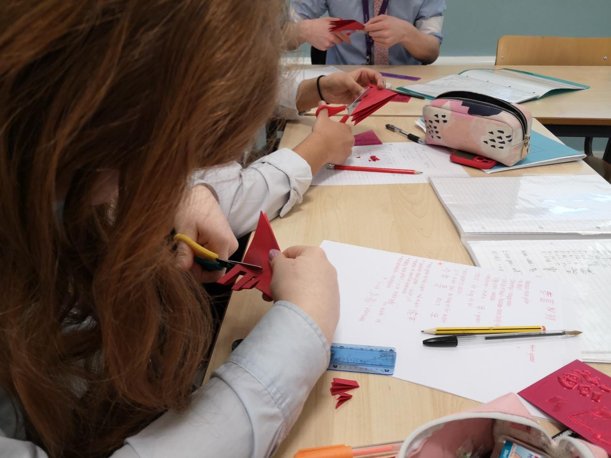 除语言学习外,学生们对体验中国文化也充满了浓厚的兴趣。他们参加了彭老师组织的各色文化体验活动:中国书法、中国剪纸、中国画扇,还参加了2022年端午庆祝活动。有些学员还把每次活动的作品收集起来,在家里做了一个中国文化展示柜呢!