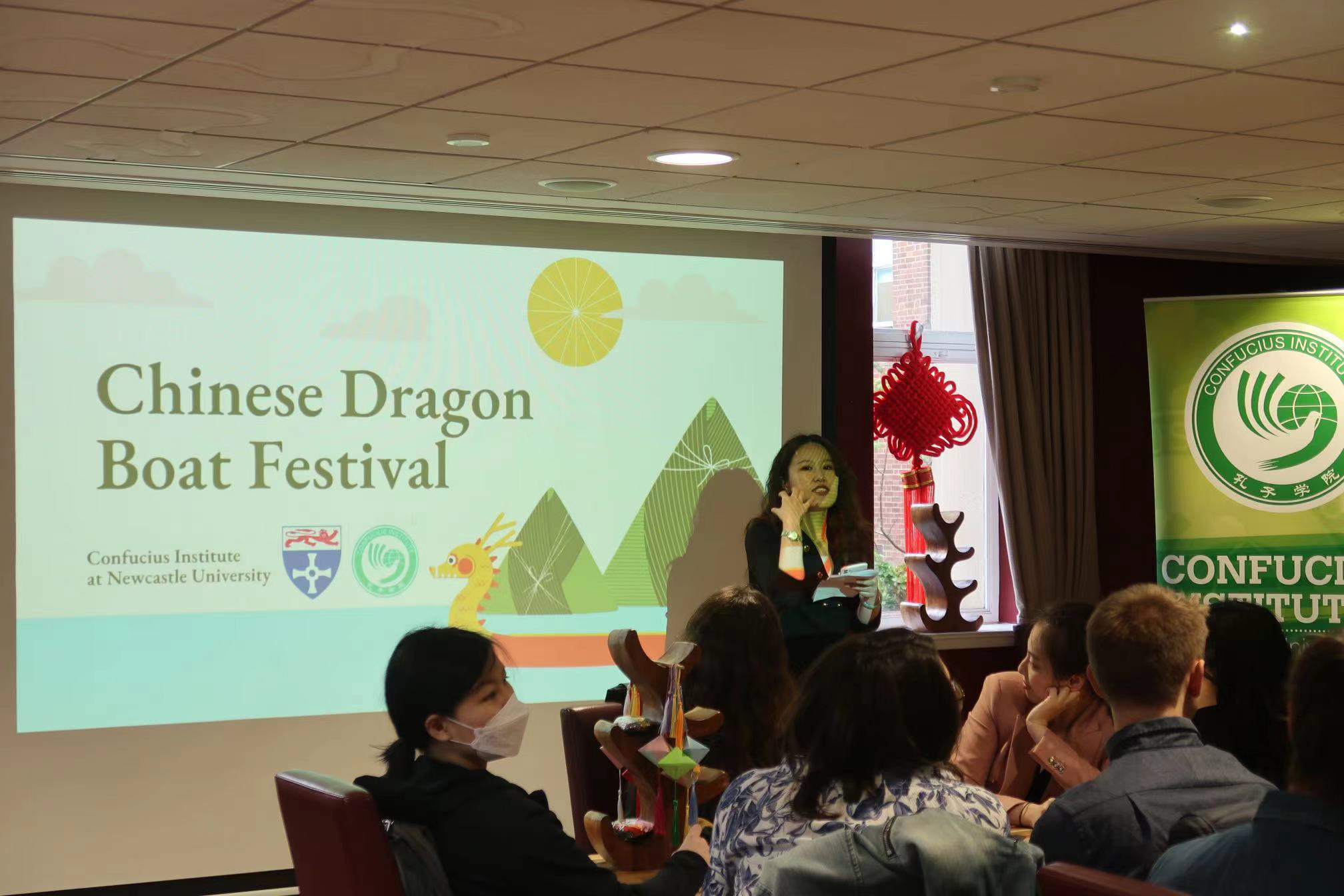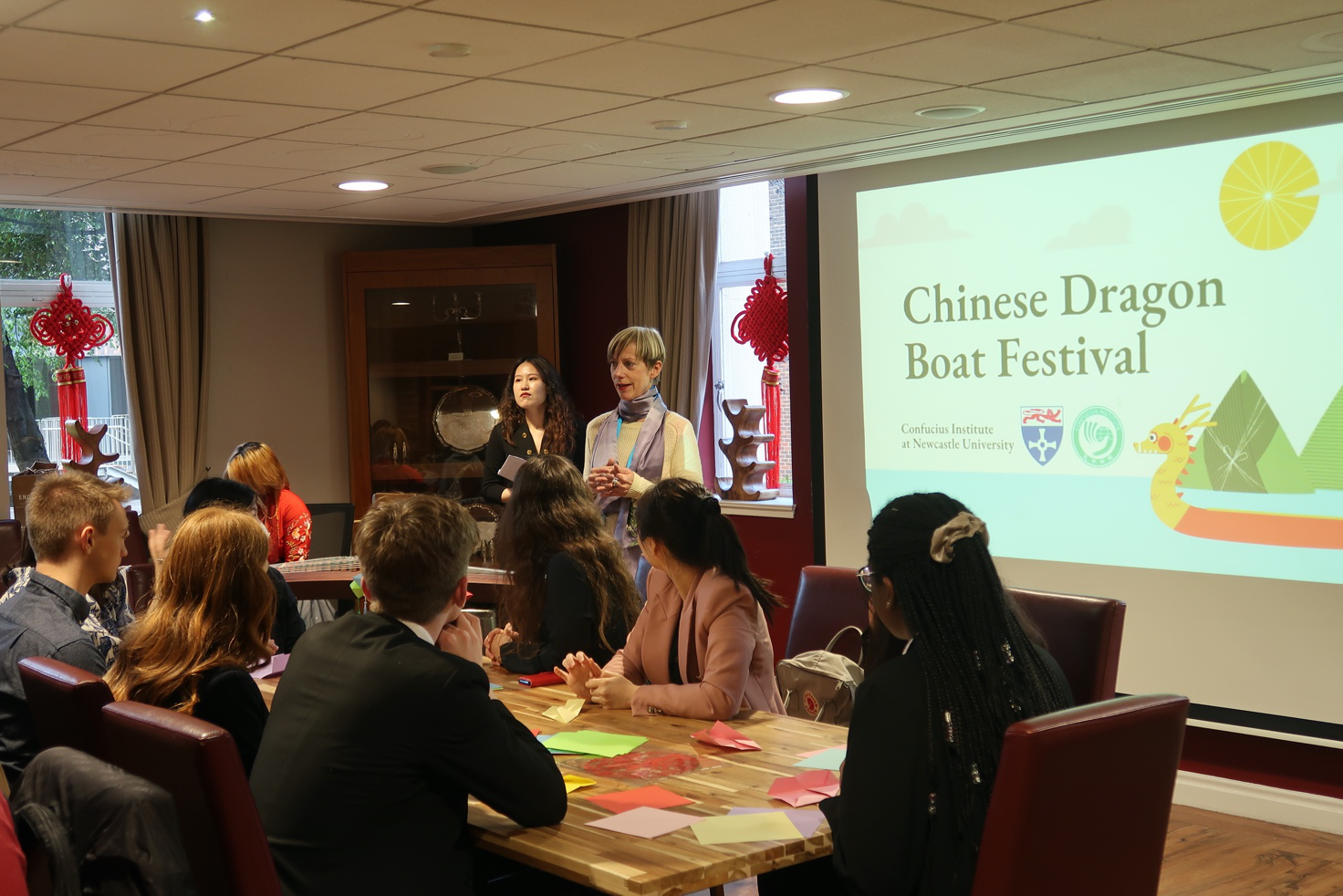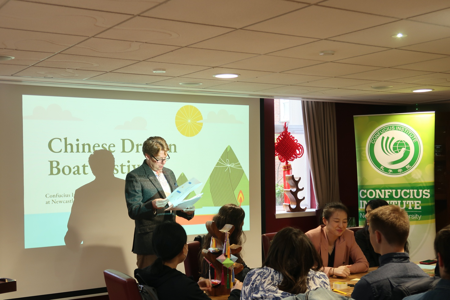 当地时间5月27日,纽卡斯尔大学孔子学院端午节线下活动在纽大旧图书馆楼餐厅大礼堂举办。活动由纽大孔院公派教师周瑶主持,纽大现代语言学院院长安智娜(Andrea Wilczynski)、孔院外方执行院长安舟(Andy Law)、孔院中方院长潘玮出席。孔院师生、学员及亲朋共近30人参加。