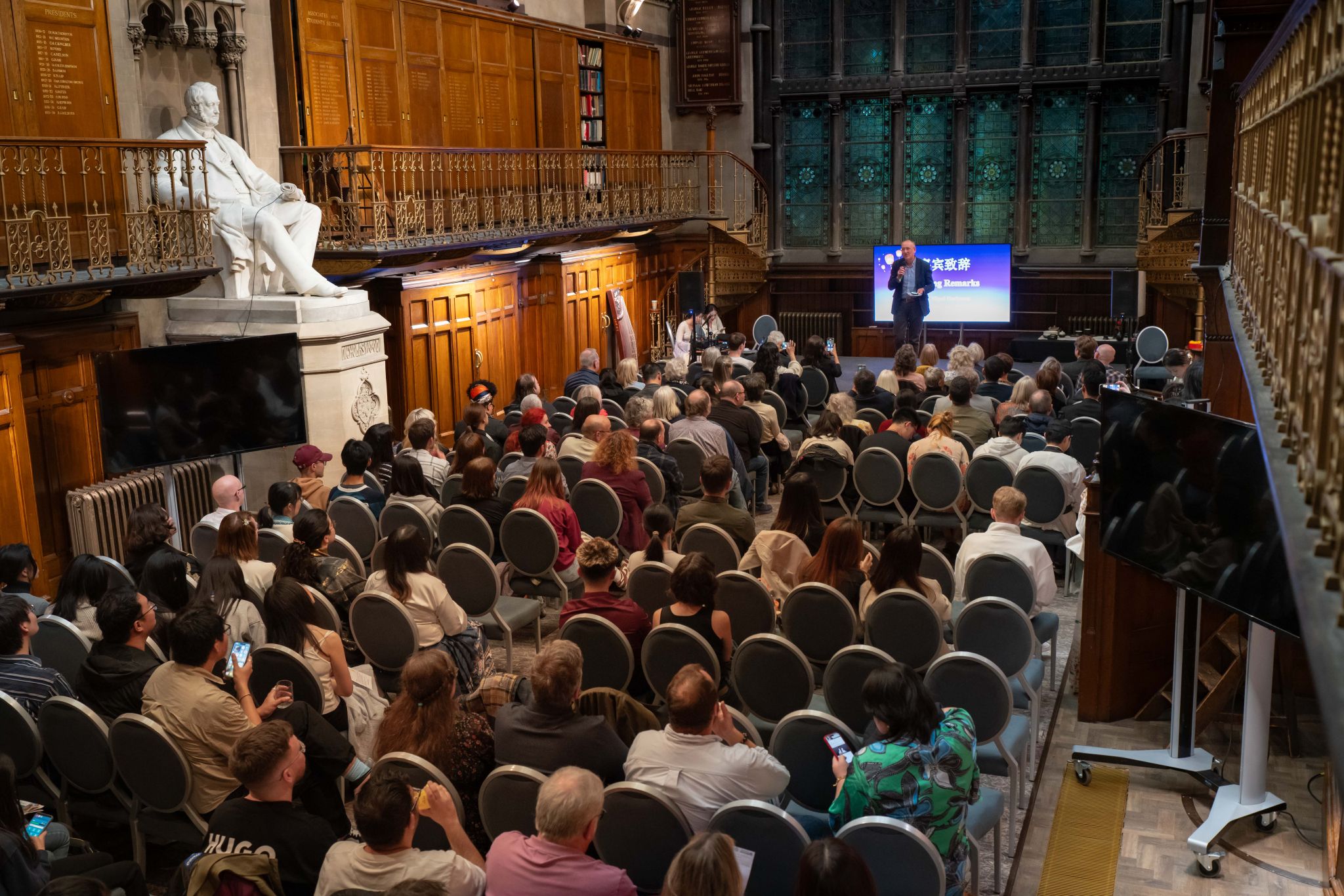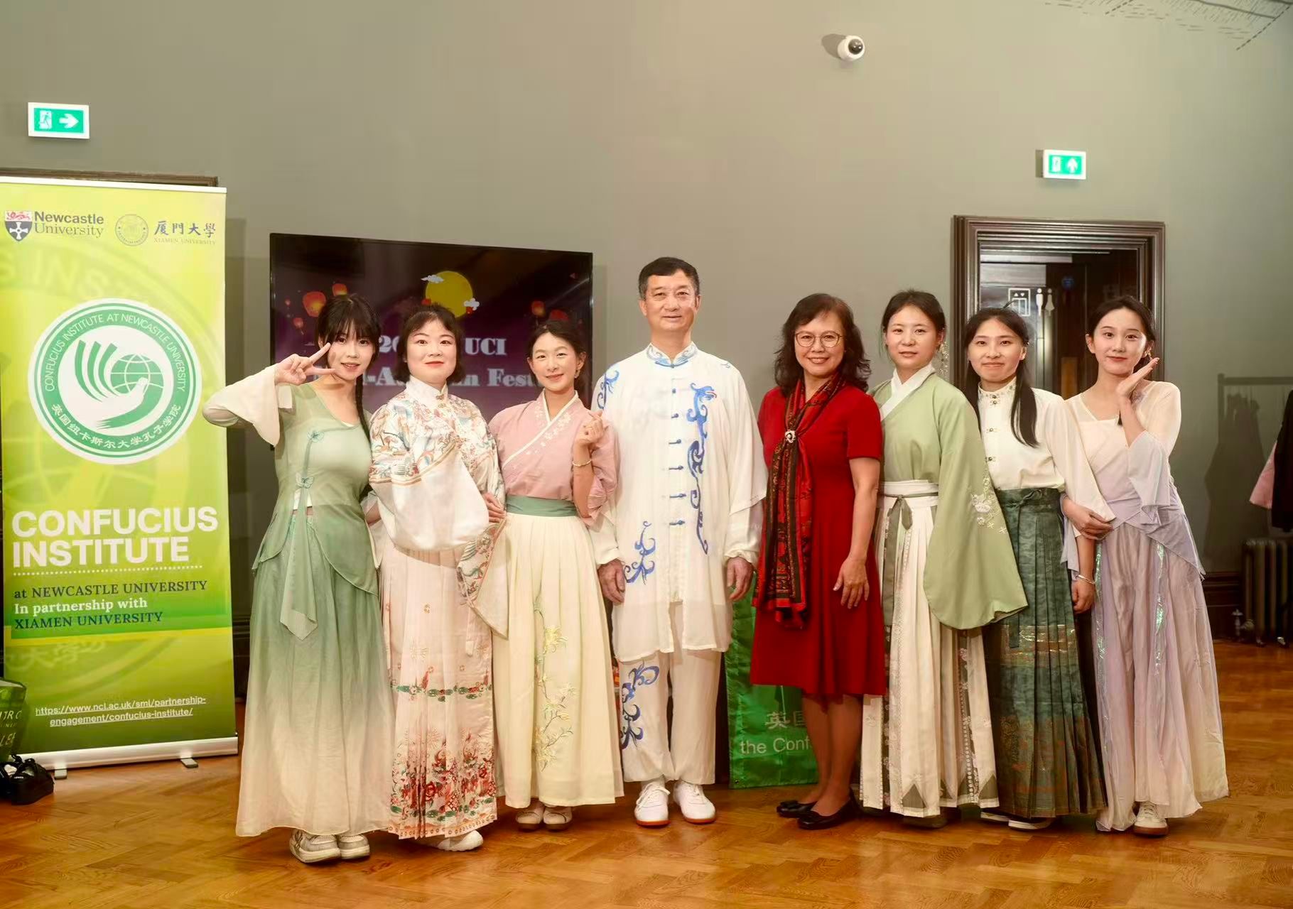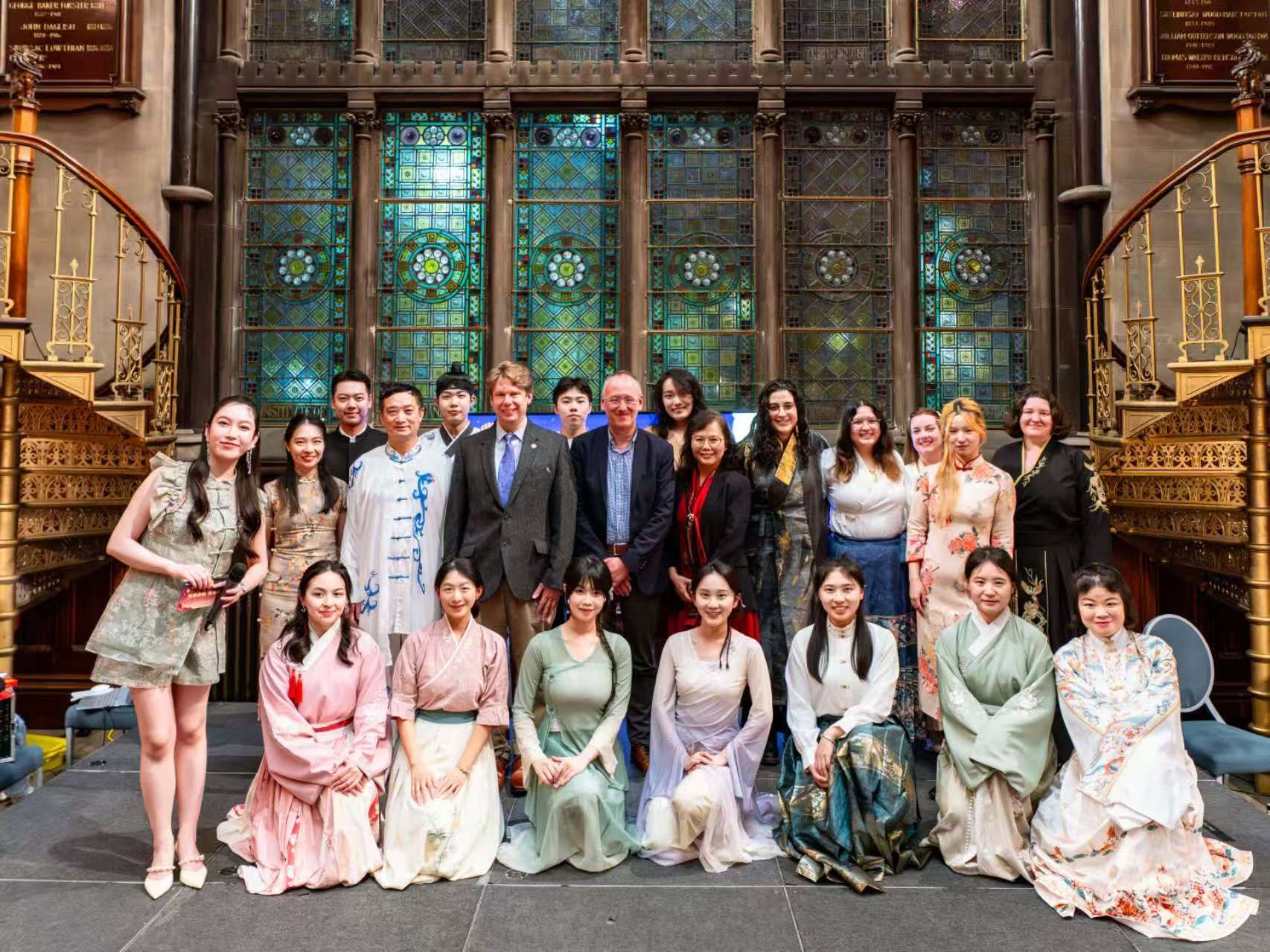 晚会伊始,在这座始建于1869年的历史建筑中,纽卡斯尔大学孔子学院外方院长Dr. Andrew Law先致欢迎辞,以诵读李白诗歌《玉阶怨》的英译文“却下水晶帘,玲珑望秋月”对全体来宾致以节日的问候。他表示,中秋节不仅是中华文化中象征团圆与思念的节日,更具有超越地域与语言的情感共鸣。
