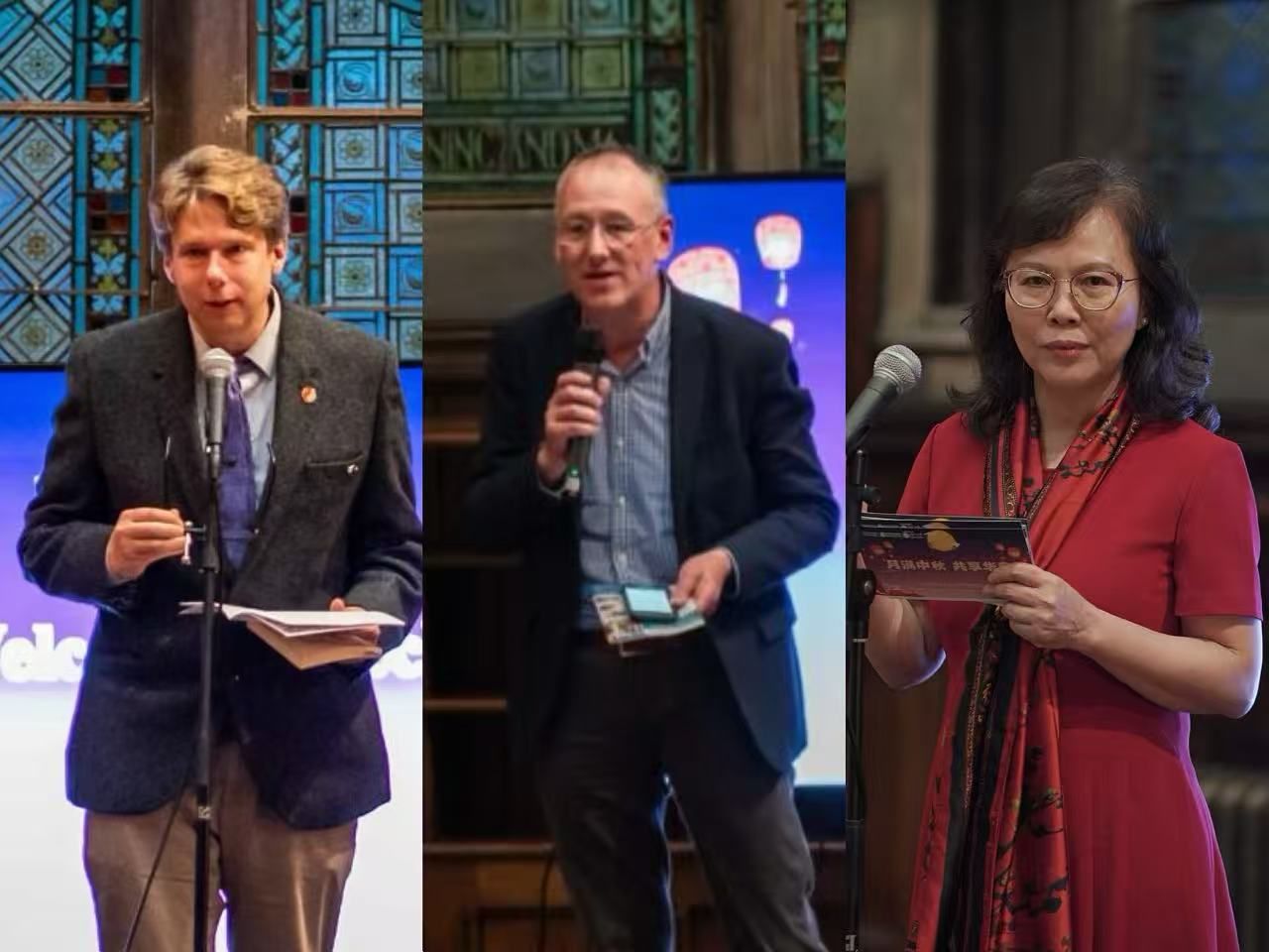纽卡斯尔大学常务副校长Nigel Harkness教授对孔院这场中秋晚会表示了极大的关注和至诚的支持。他远从英国南部开会回来,刚下火车,就不辞辛劳直奔活动场地,赶来参加孔院活动,并饶有兴致观赏节目,直到最后落幕,由他致闭幕辞。在闭幕辞中,Nigel指出,纽大孔院不仅是语言教学与文化交流的平台,更是一座跨越国界、沟通心灵的桥梁。他强调,纽大孔院的使命在于连接中国与英国,连接过去与现在,连接古典与现代。无论是文学、艺术还是思想,孔院都以开放与包容的姿态,让两种文明在交流中相互启发,在理解中共同成长。Nigel表示:“正如今晚的明月,孔子学院所传递的光芒超越时间与地域,它让不同文化背景的人们在相遇中相知,在共赏中共情。”