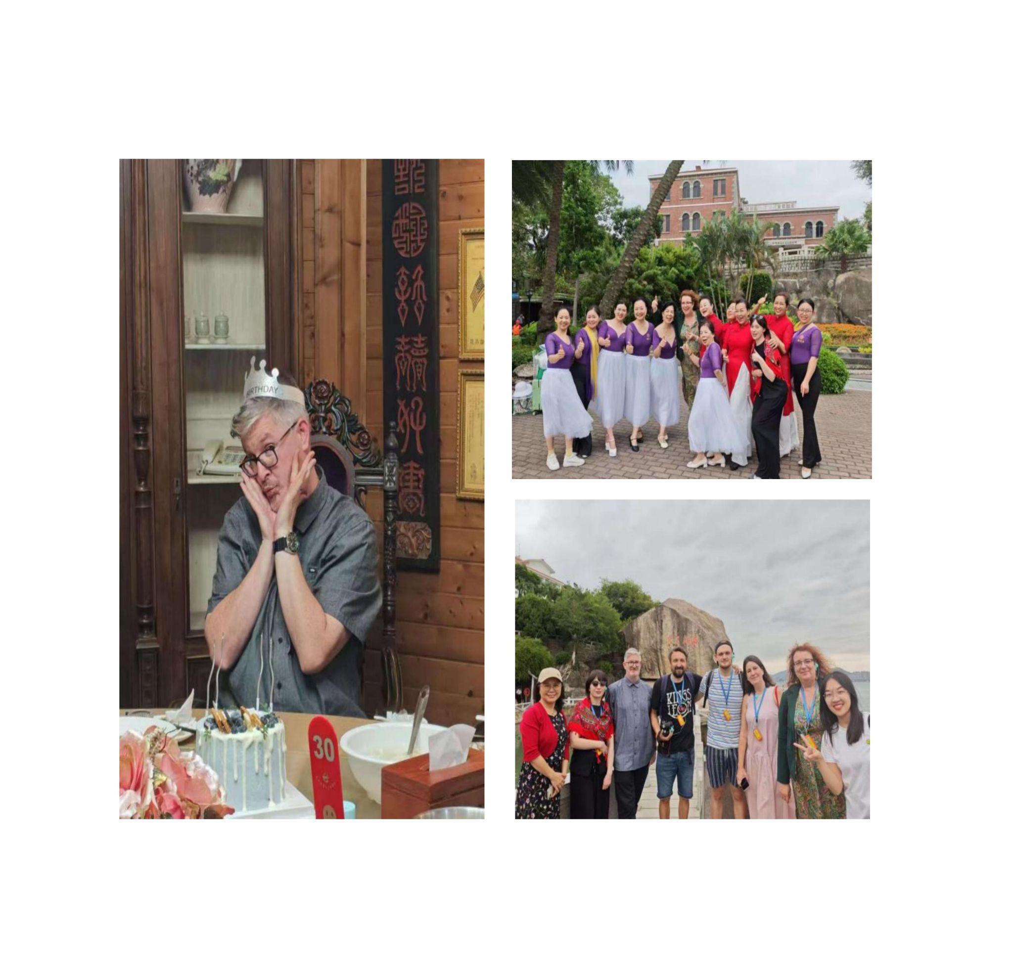 文化交流在轻松愉快的氛围中达到高潮。在鼓浪屿,Declan和Ruth女士欣然加入了当地居民的广场舞队伍,用音乐和舞蹈诠释了“艺术无国界”的真谛。随行的英国纽卡斯尔孔院中方院长苏欲晓教授为每位英国友人都精心选取了契合其性格与职业特点的中文名,如Adam Farr名为“华安达”、Angus Reid名为“任扬歌”、David Osborne名为“欧岱伟”等,增添了浓厚的人文关怀。访问鼓浪屿当日,恰逢Angus(任扬歌)先生的生日,苏欲晓以纽卡斯尔大学孔院的名义特意为他举行了温馨的生日晚会,现场气氛热烈,情谊融融。