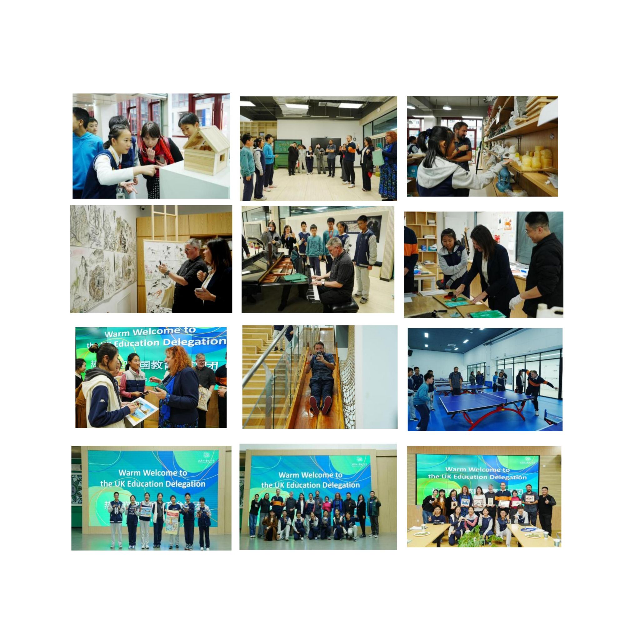 学生们手上各自攥着一张小纸,上面写着对所介绍模块的英文内容,无论英文是否流利,都大大方方地介绍他们所擅长的AI设计、多声部唱歌、国画、雕塑、运动与娱乐项目等等。校内师生间平等、友善、和谐的关系,孩子们与代表团交流过程中的好客、欢乐、自信,以及这个学校极为丰富的学习与生活资源,都给英国老师们留下至深印象;他们也全然融入学生们为他们介绍并提供的各种实践中:滑梯、乒乓球、版画、钢琴,等等。其中一位代表团员感慨道:只能说,我们叹为观止!