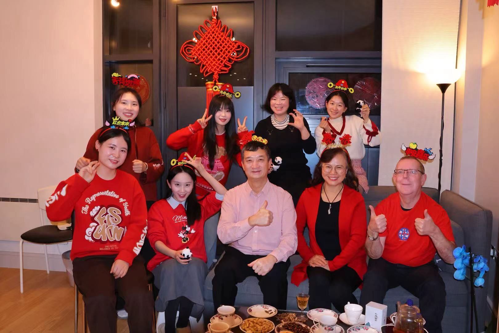 当地时间11月21日(周六),窗外是初冬第一场白雪后的凛冽寒意,窗内却暖意融融——孔院中方院长苏欲晓教授的公寓内,茶香扑鼻、烤鸭飘香,刚出锅的饺子冒着腾腾热气,香气在空气中缓缓散开;一场宾朋尽欢的中英老友聚会正热闹上演。