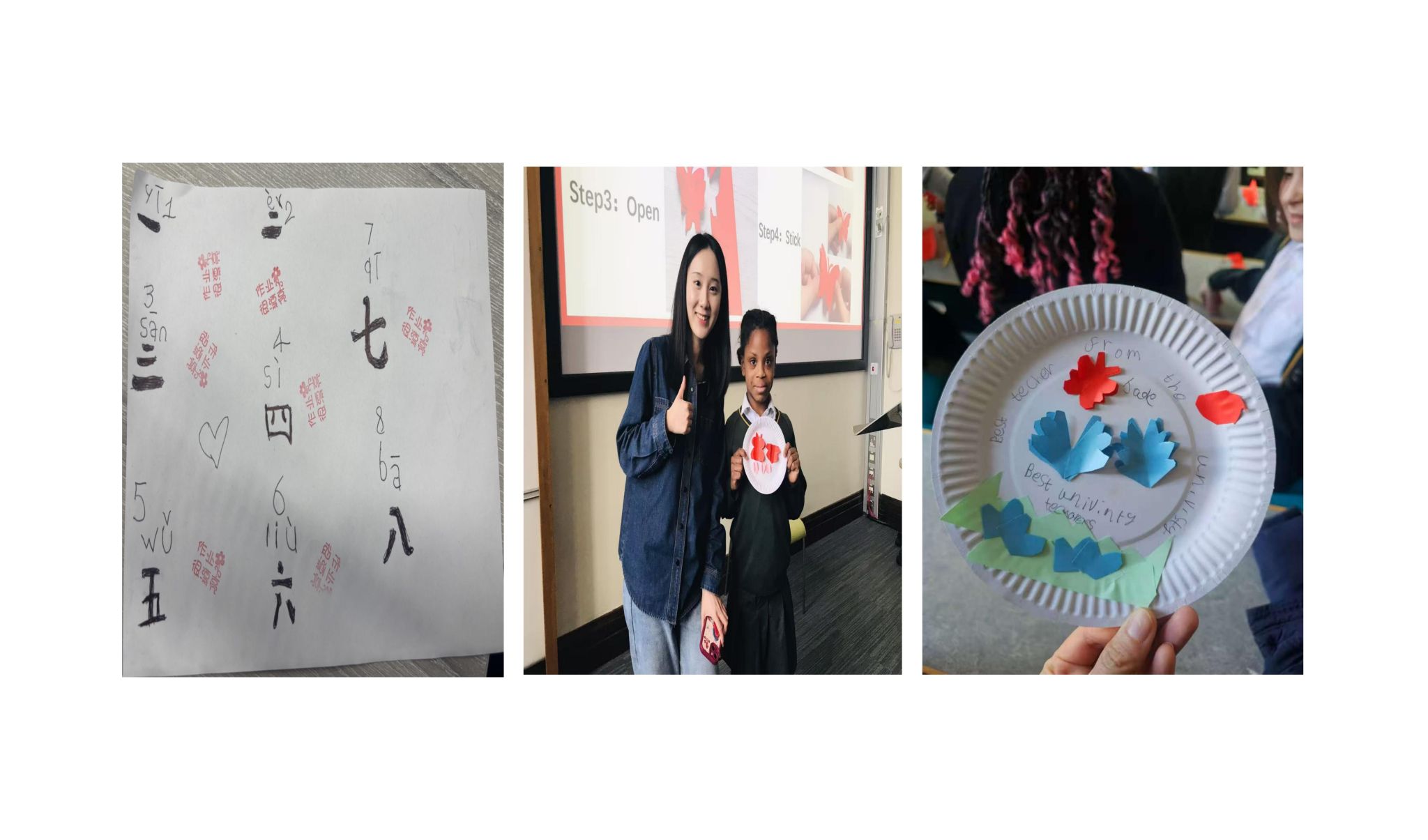 在语言课堂上,公派教师陈仕佳、朱柳婧、王苗,针对中小学生的身心特点,为St. Paul's CE Primary School、Christ Church Primary 、St Michael's Catholic Primary School、Our Lady & St. Anne's Catholic Primary School四所学校推出了“快乐汉语数字”课程。其丰富多样的课堂活动,从声音、汉字书写、肢体动作带动学生们全方位地参与到课堂中。不仅教授了1至10的读音,还引入了中国独特的“单手翻手势”数字表达法。英国师生们对这种仅用一只手就能表达1到10的“中国密码”表现出浓厚兴趣。孩子们拿着自己写着工工整整的汉字,满脸自豪。