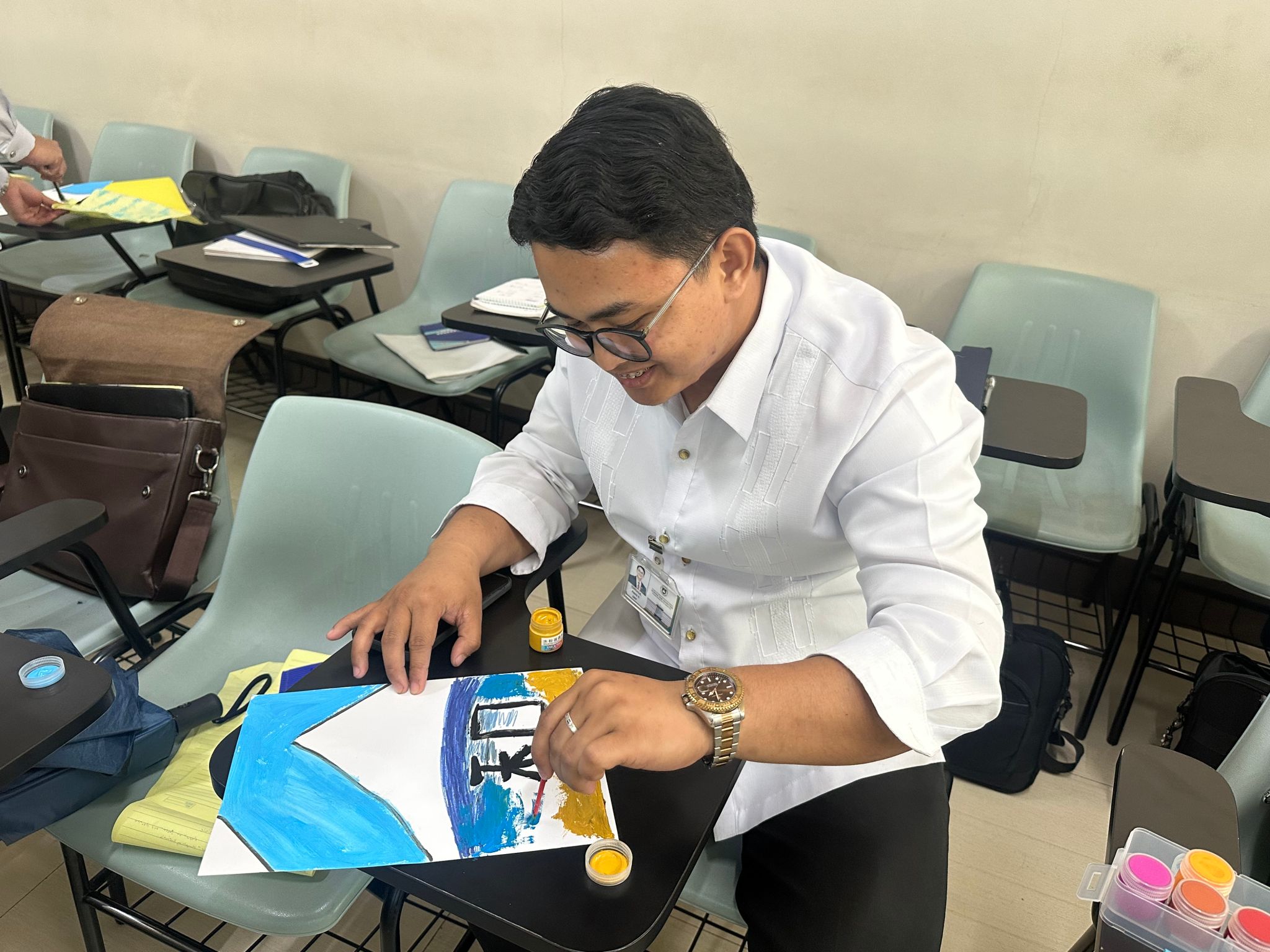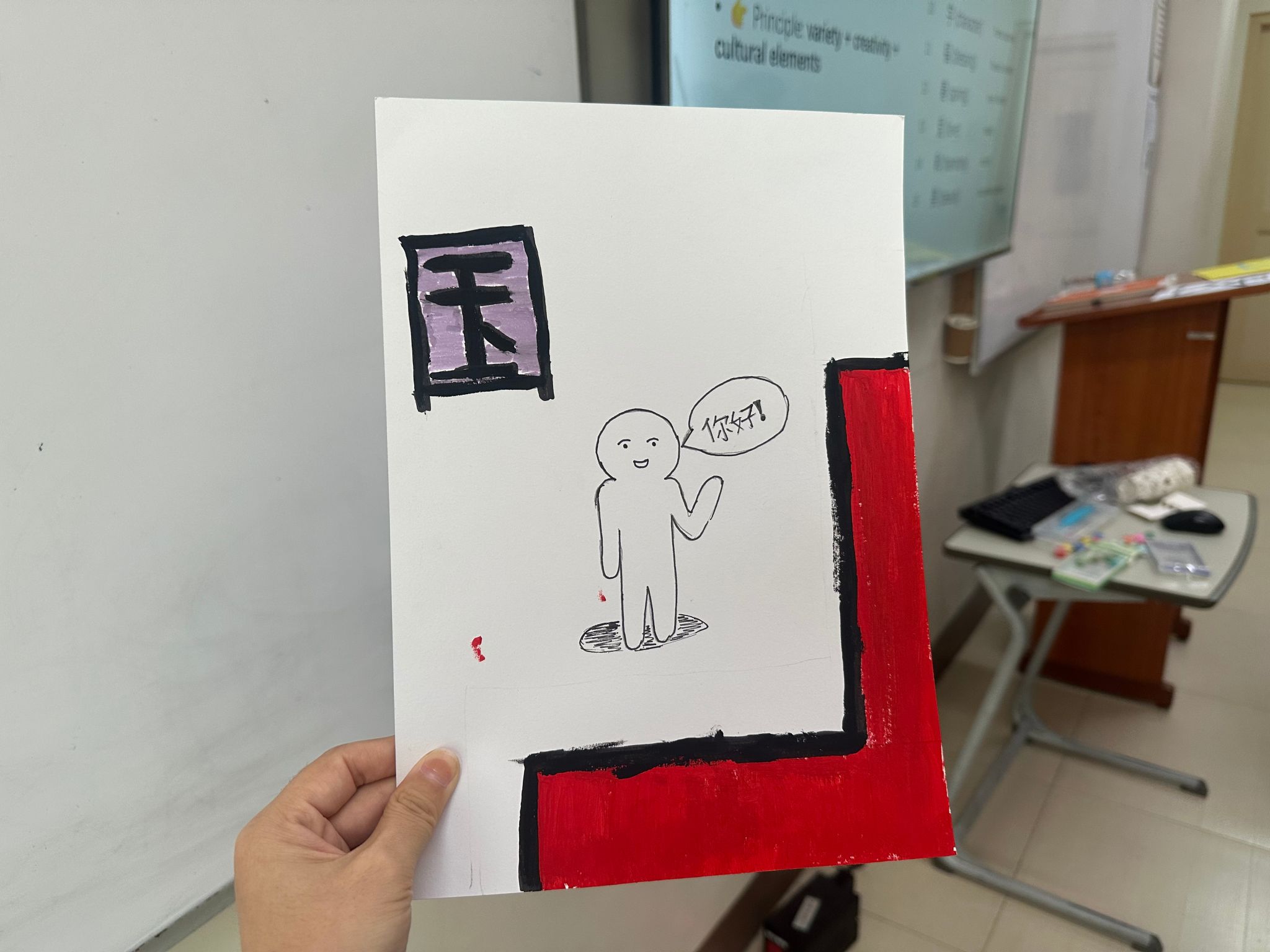 本次活动以集体创作为核心,吸引了新世纪大学教学点学生积极参与。在教师王小姣的引导下,学生们围绕“汉字”主题,将课堂所学与艺术创作相结合:有的以已学汉字为灵感,描绘字形之美与文化内涵;有的将中文学习体验融入作品,用色彩记录成长点滴;还有的融合菲律宾本土文化元素,使汉字在多元文化交融中焕发新的生命力。最终,所有作品拼接成完整的“中文”大幅画作,不仅展现了汉字的独特魅力,也凝聚了学生们学习中文、了解中国文化的热情。
