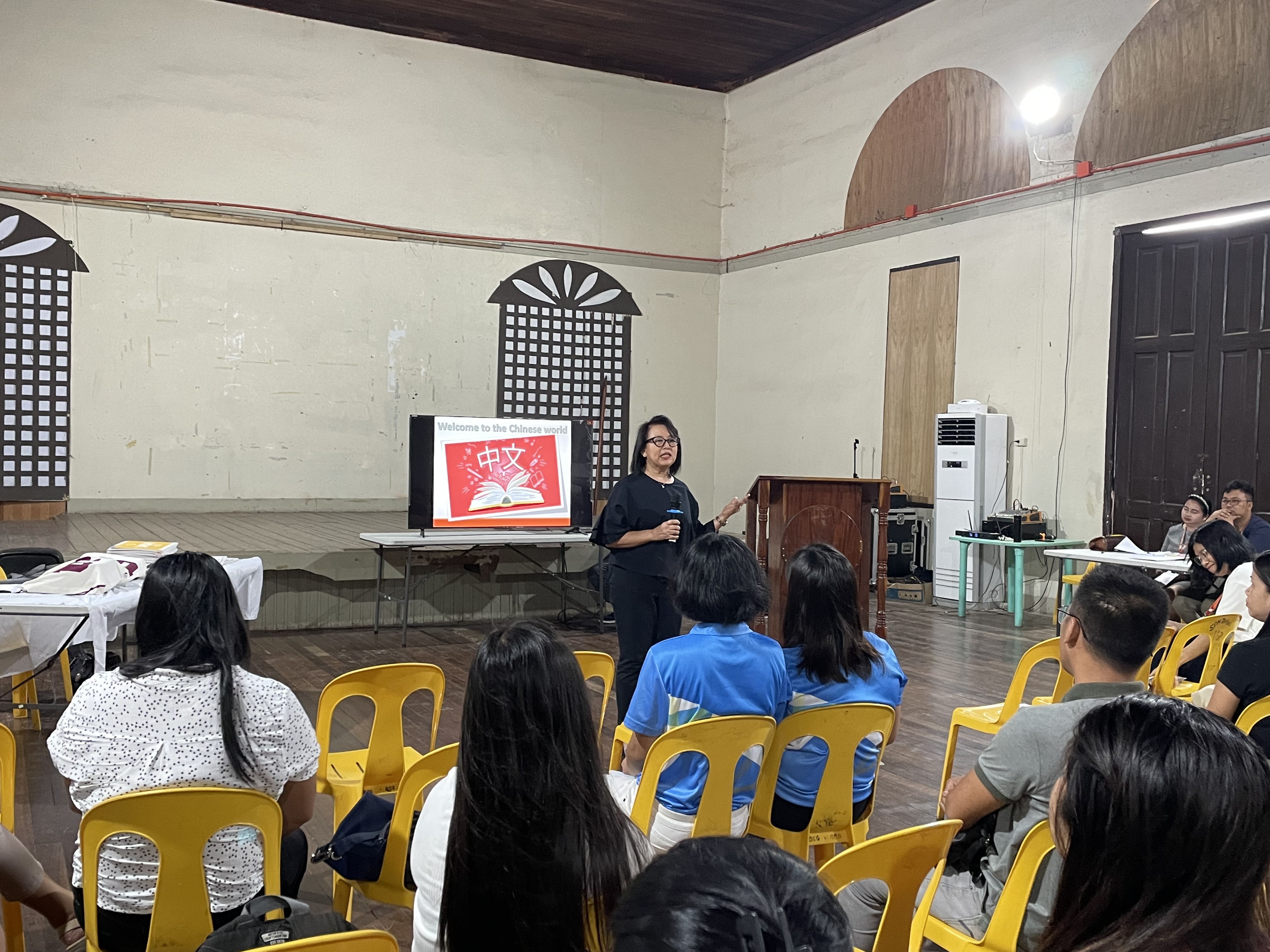 阿伯拉大学还精心组织了项目宣讲会。在宣讲会上,菲大孔院院长Dr.L Lourdes T. Nepomuceno介绍了菲大孔院的成立背景、发展历程以及各个教学点的汉语教学项目与文化活动情况,中方院长施雪琴教授向老师们宣讲了汉语水平考试(HSK),并向阿伯拉大学赠送了HSK 学习教材。访问期间, 菲大孔院还与菲律宾菲华商联总会阿伯拉分会负责人进行了交流。