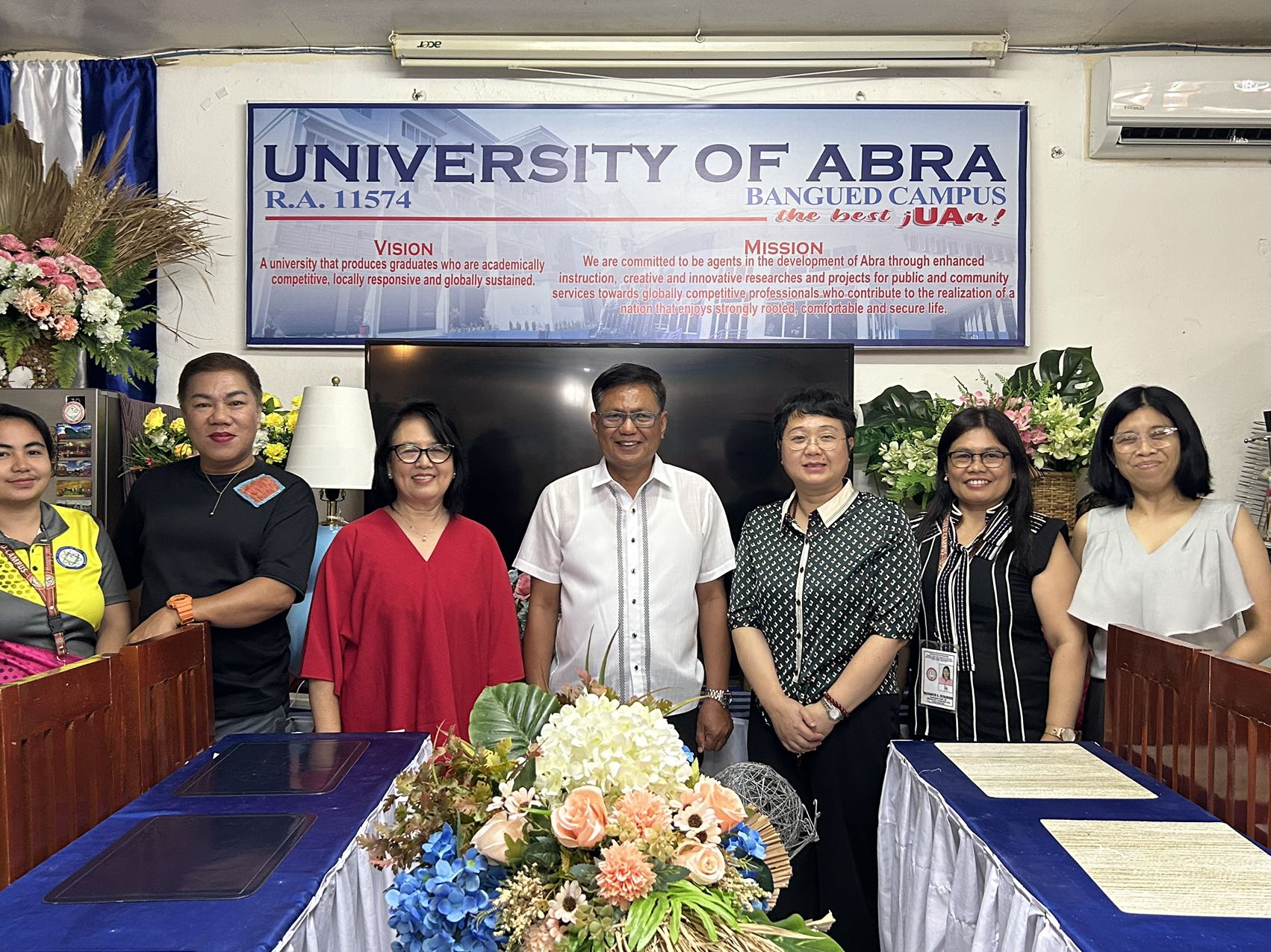菲大孔院一行受到阿伯拉大学校长 Dr. Gregorio T. Turqueza, Jr,语言系主任Dr.Elizabeth Fetalvero、项目负责人Patricia Benedito女士的热情接待, 经过磋商后,双方初步达成合作协议。