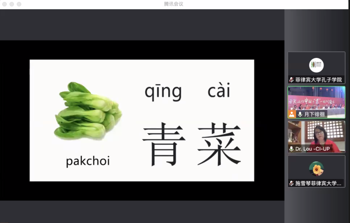 淮扬菜是中国饮食文化的重要组成部分,作为中国四大菜系之一,始于春秋,兴于隋唐,盛于明清,有“东南第一佳味,天下之至美”的美誉。本次活动淮安现场展示并讲解淮扬菜著名菜点全家福、蟹粉狮子头、平桥豆腐、春卷、四喜蒸饺的制作方法及特色,带来了活动中精致的美食景观。并将中文美食词语的学习融入其中,向学生代表介绍了春笋、青菜、皮肚、生抽等中文词汇。菲律宾厨师线上展示了菲律宾特色美食脆炸猪皮的做法,讲解了切、晾、烘、炸以及酱料调制的烹制步骤。两国特色美食跨越空间的距离,云端互动。