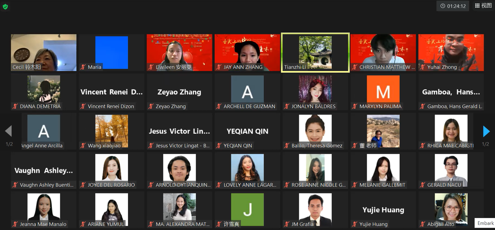 新年伊始,为贯彻落实中菲元首会晤精神,全方位深化中菲人文交流,增进双方了解,拓展双方基础教育、职业教育合作,当地时间2023年1月18日,在中国驻菲律宾大使馆教育处与江苏省中华职业教育社的共同指导下,菲律宾大学孔子学院携手中国淮安“世界美食之都”厨艺课堂,联合举办“舌尖上的中国·‘菲’一般的淮味”——2023春节中菲淮扬美食文化线上体验交流活动。在菲大孔院线上会场和今世缘会场,中国驻菲律宾大使馆教育参赞熊胜先生发表视频致辞,菲大孔院中方院长施雪琴教授、外方院长Dr. Lourdes T Nepomuceno、江苏省中华职业教育社秘书长倪南及淮安市相关部门领导出席活动,与菲大孔院师生欢聚一堂,实践厨艺,共话交流。