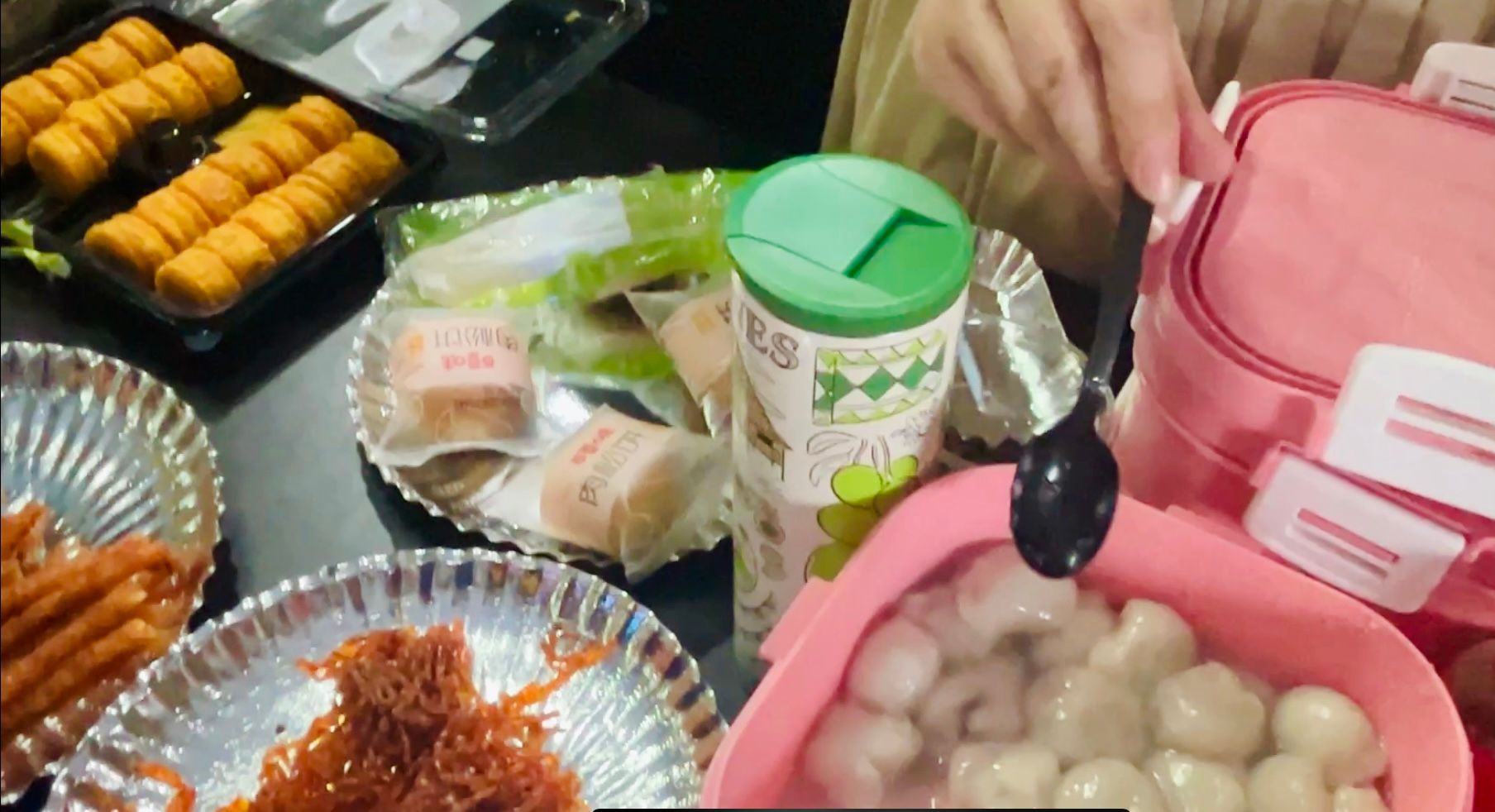 中国展台以素雅的米白色为基调,背景墙中央以剪纸形式呈现的“中国”二字端庄大气,四周环绕的十二生肖图案错落有致,最上方火遍全球的《哪吒》动画形象的巧妙点缀,让传统与现代元素形成有趣呼应。“我们希望既展现中华文化的深厚底蕴,也传递当代中国的创新活力。”一位同学向来访者介绍道。展台前,刚出锅的黑芝麻汤圆散发着温热香气,引得体验者驻足品尝,还有年轻群体喜爱的休闲零食,形成巧妙搭配。