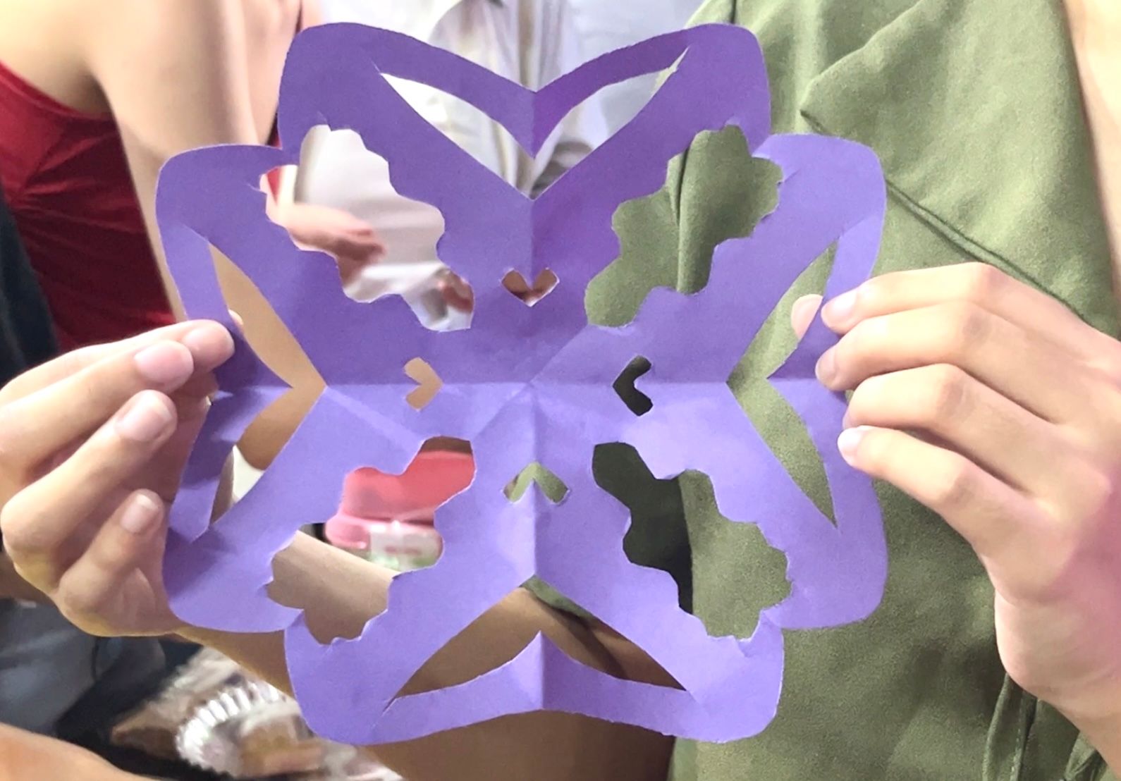 “左手拿稳纸张,右手沿着线条慢慢剪……”一位菲律宾学生正专注地学习制作窗花。当第一朵紫色四瓣花在指尖绽放时,她兴奋地举起向同伴展示分享。展台另一侧也传来阵阵欢笑。孔院丁老师正耐心示范着毽球的基本动作,鼓励体验者尝试连续踢毽。活动间隙,丁老师还向各国学生介绍了菲大孔院以及面向菲大常年开设的免费中文课程,欢迎大家到孔院学习中文,更深入地了解中国。