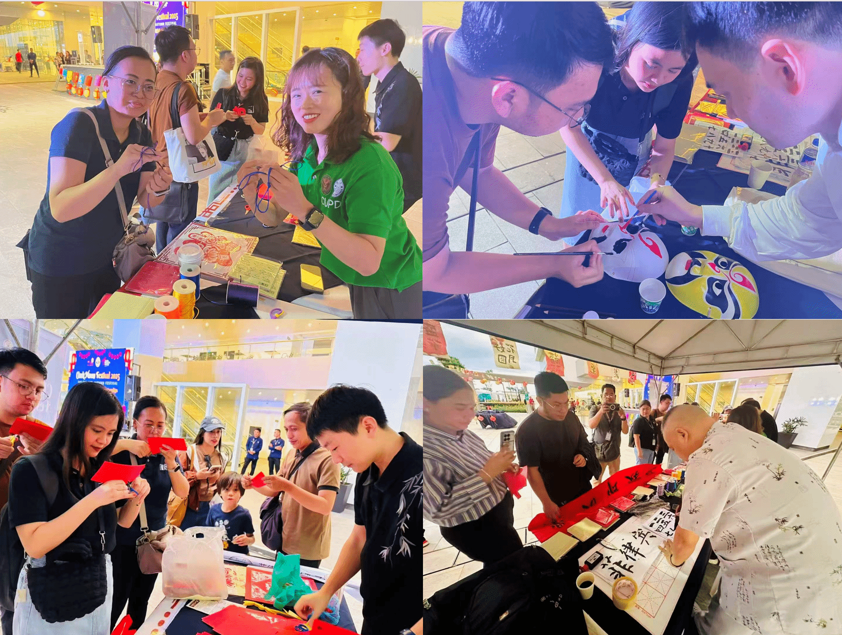 活动现场设有中国结、剪纸、书法、脸谱绘画等文化体验展台,黄玉洁、高波、吴星宇、张泽耀等老师倾情参与,现场人头攒动、热闹非凡。民众热情参与,纷纷与老师合影留念,许多人还主动咨询中文课程,希望进一步学习中国语言与文化。文艺表演与月饼分享更将活动推向高潮,异国他乡的夜晚洋溢着浓浓团圆情。