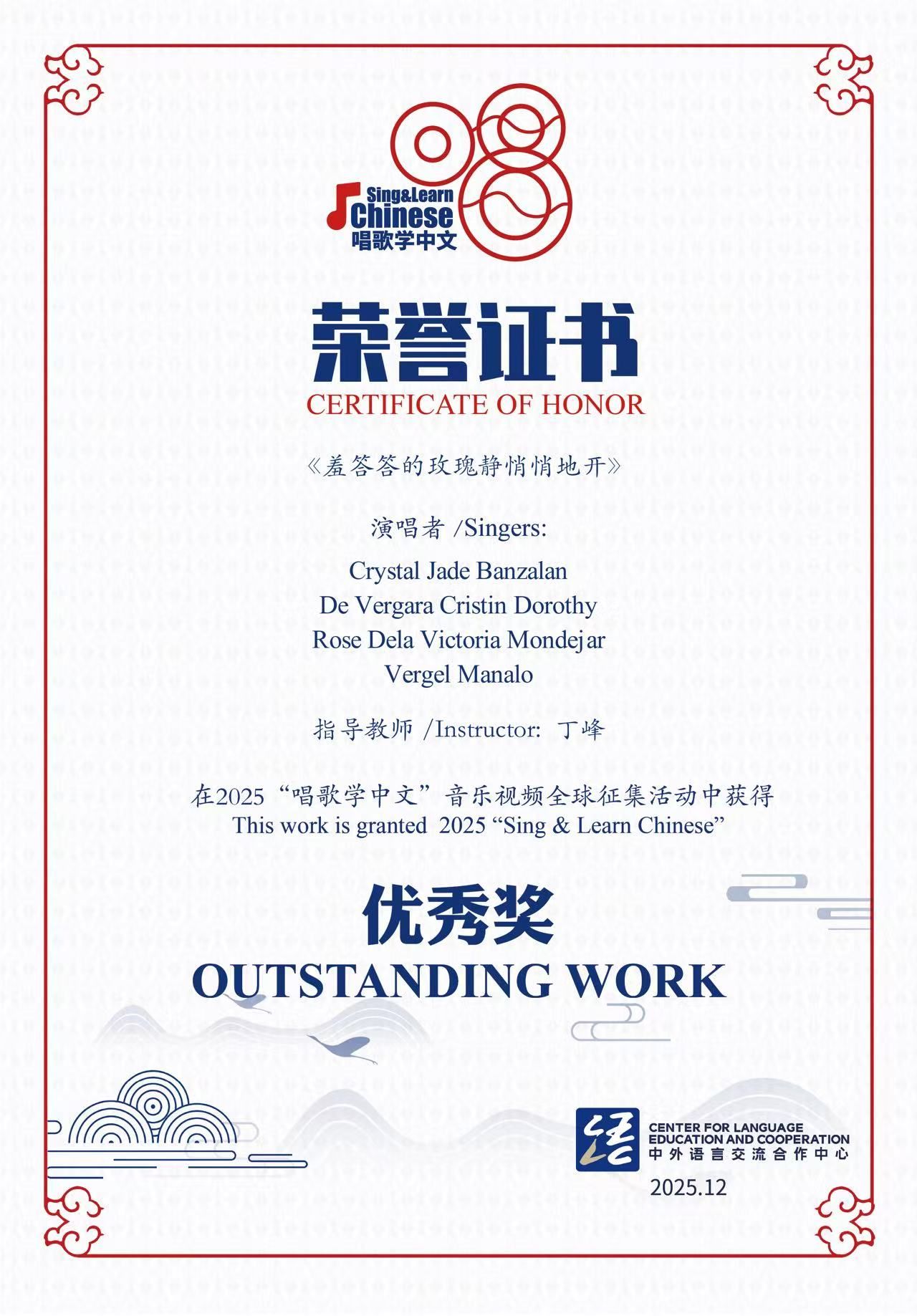 1 月中旬,菲律宾大学孔子学院的教师们收到喜讯,孔院学员在“唱歌学中文”全球活动中成功获奖。