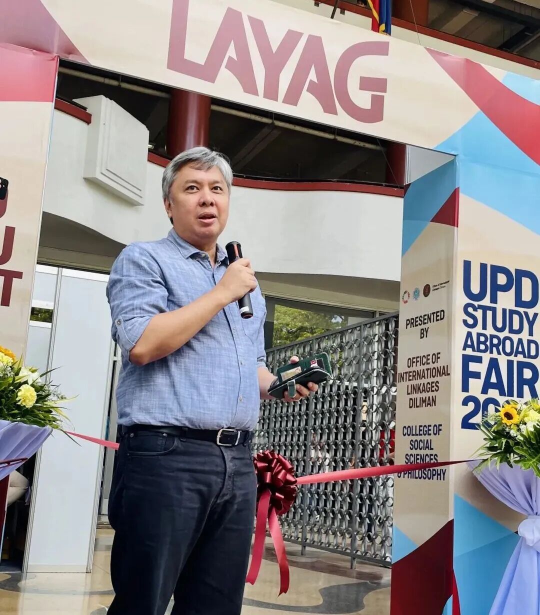 菲大迪里曼校区校长埃德加多·卡洛·威斯坦二世(Atty. Edgardo Carlo L. Vistan II)出席留学展开幕式并致辞。他对参与本次展会的各国高校与机构表示欢迎和感谢,并表示,希望本届留学展能如 “LAYAG”(扬帆起航)的寓意一般,在各方携手努力下,为菲大学子铺就通往更广阔未来的发展道路。