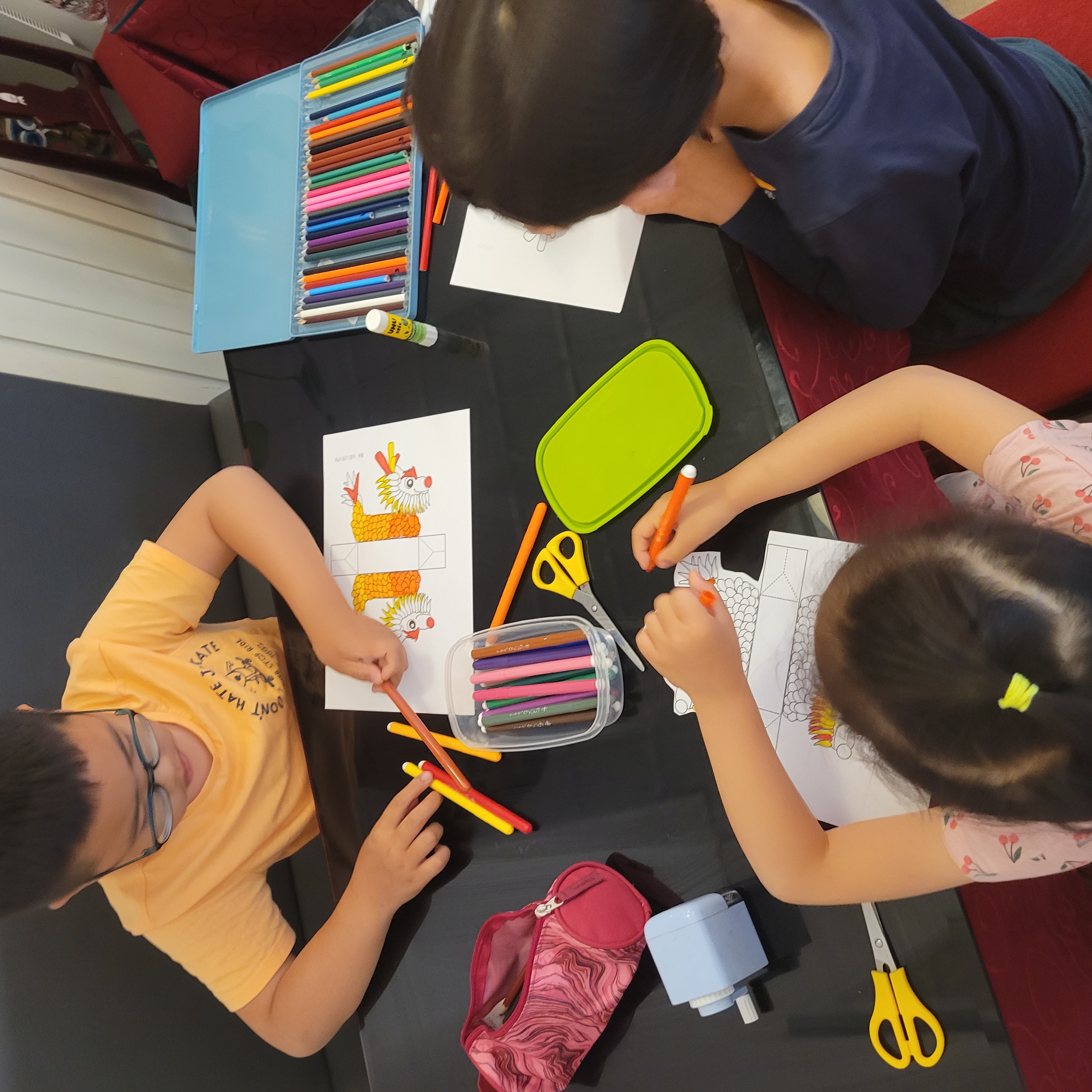 学生们正认真地绘制“龙舟”