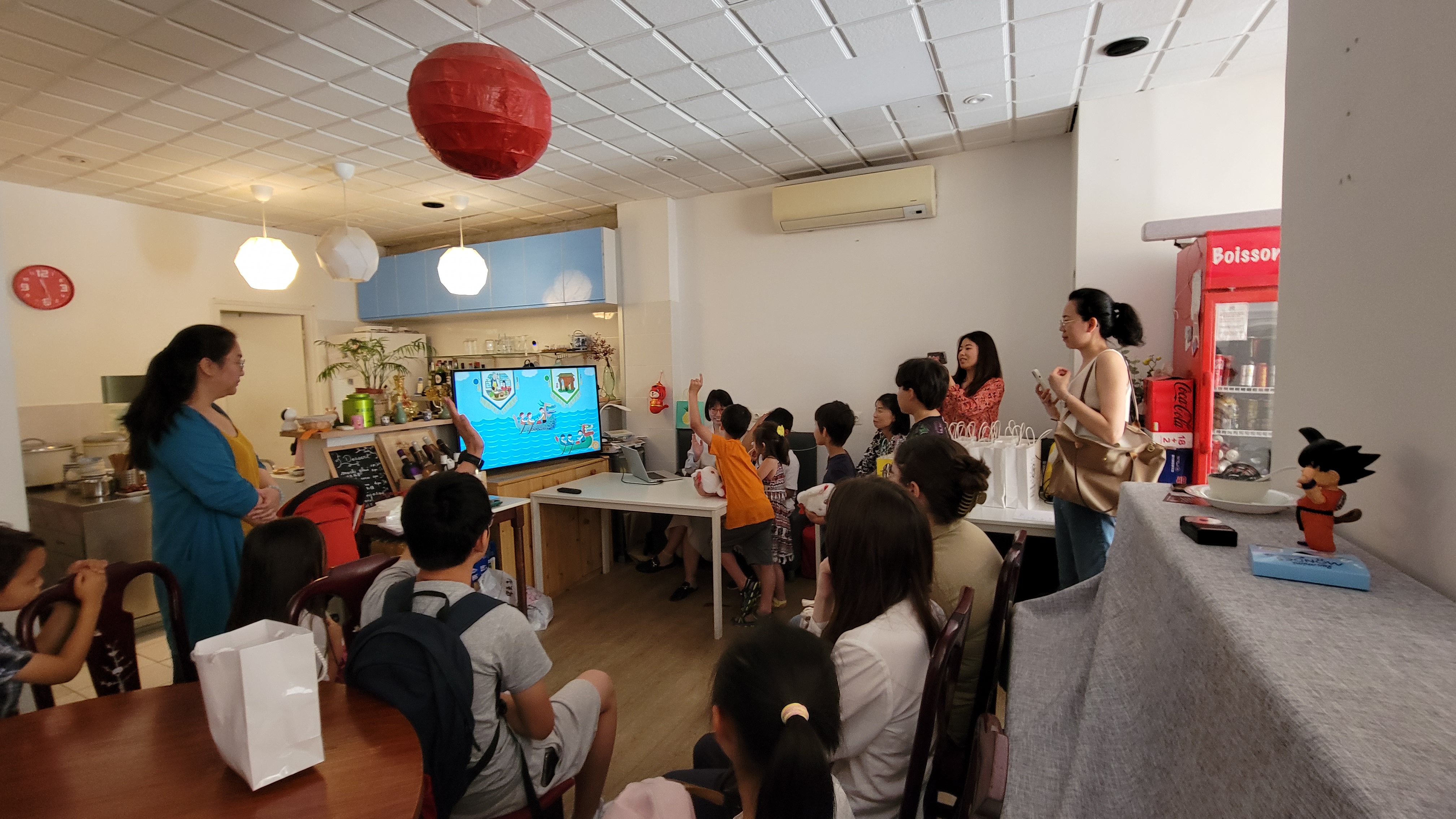 学生们积极抢答“赛龙舟”小游戏