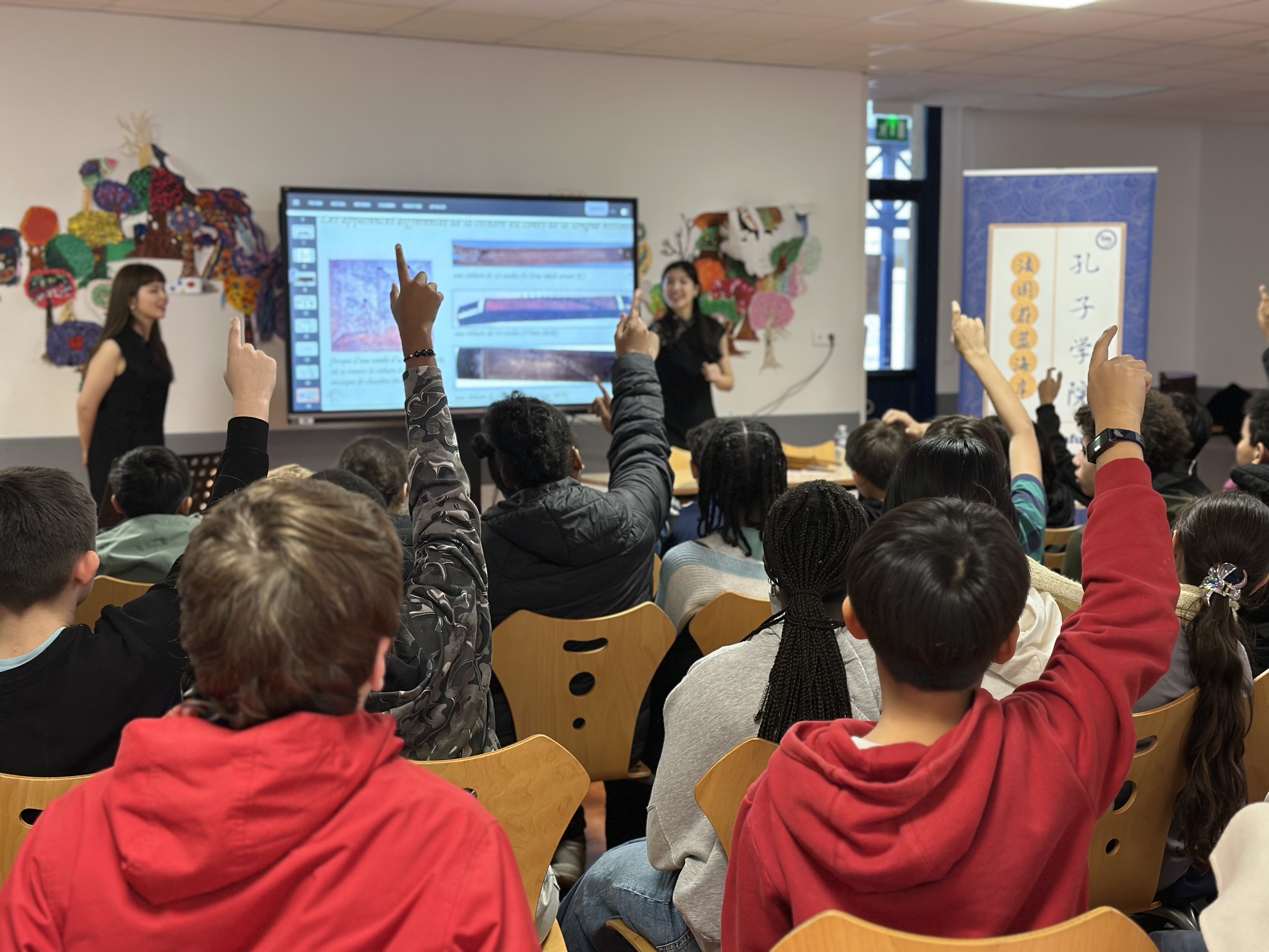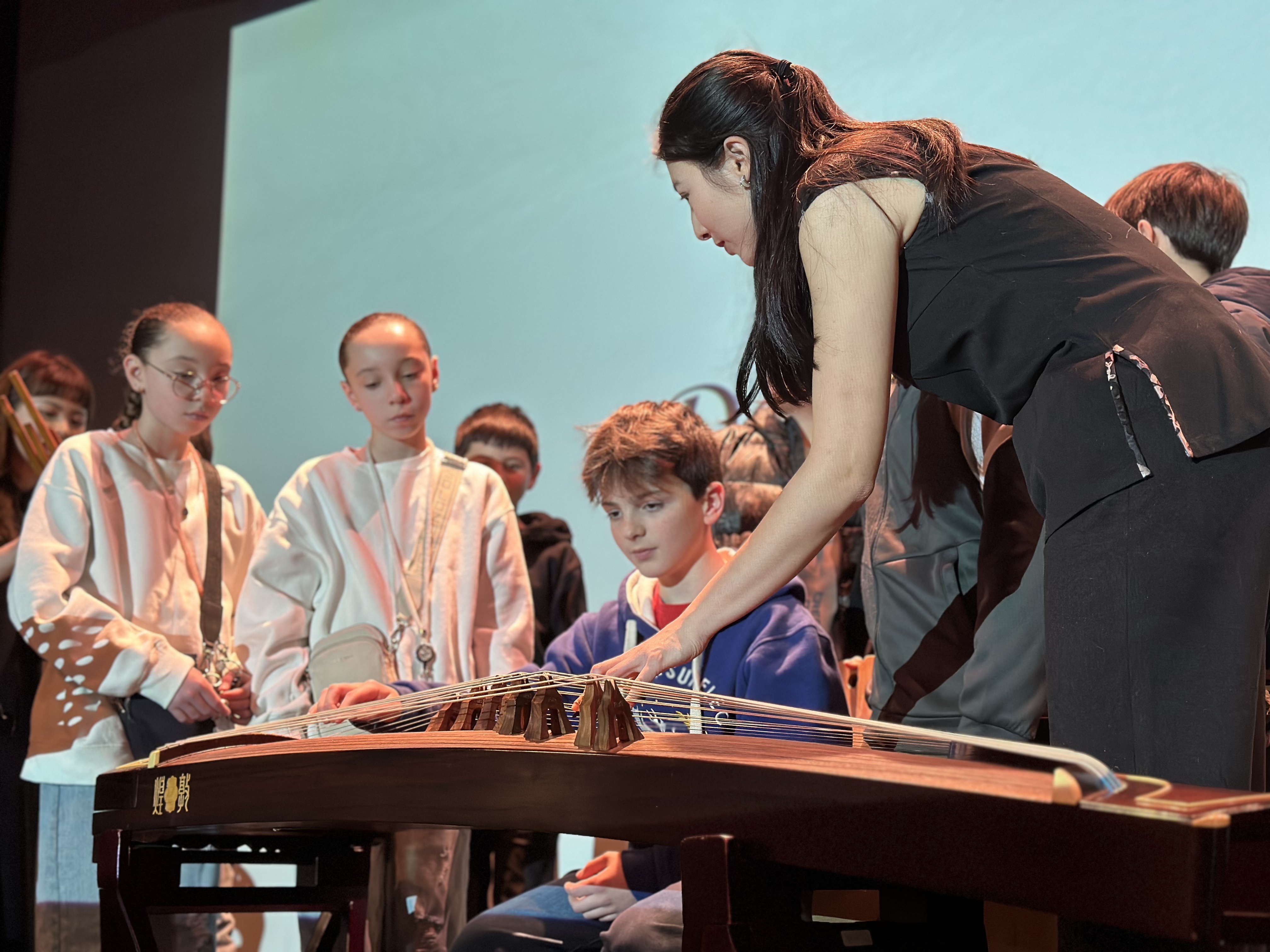 当地时间1月23日上午,活动在法国排名前十的瓦尔邦国际中学举行。近70名学生和众多家长共同参与了这场音乐盛会。当两位音乐家合奏中国民歌《小河淌水》时,优美的旋律跨越语言与文化的界限,让在场的师生深深感受到了音乐这一世界共通的情感语言。活动中,两位音乐家都特别注重与学生的互动。学生们不仅可以近距离观察这些传统乐器的构造,还有机会亲手触摸和尝试演奏,体验中国传统音乐的独特魅力。通过问答环节,学生们表现出了对中国传统音乐浓厚的兴趣,纷纷就乐器的演奏技巧、音乐表现力等方面提出了许多富有见地的问题。