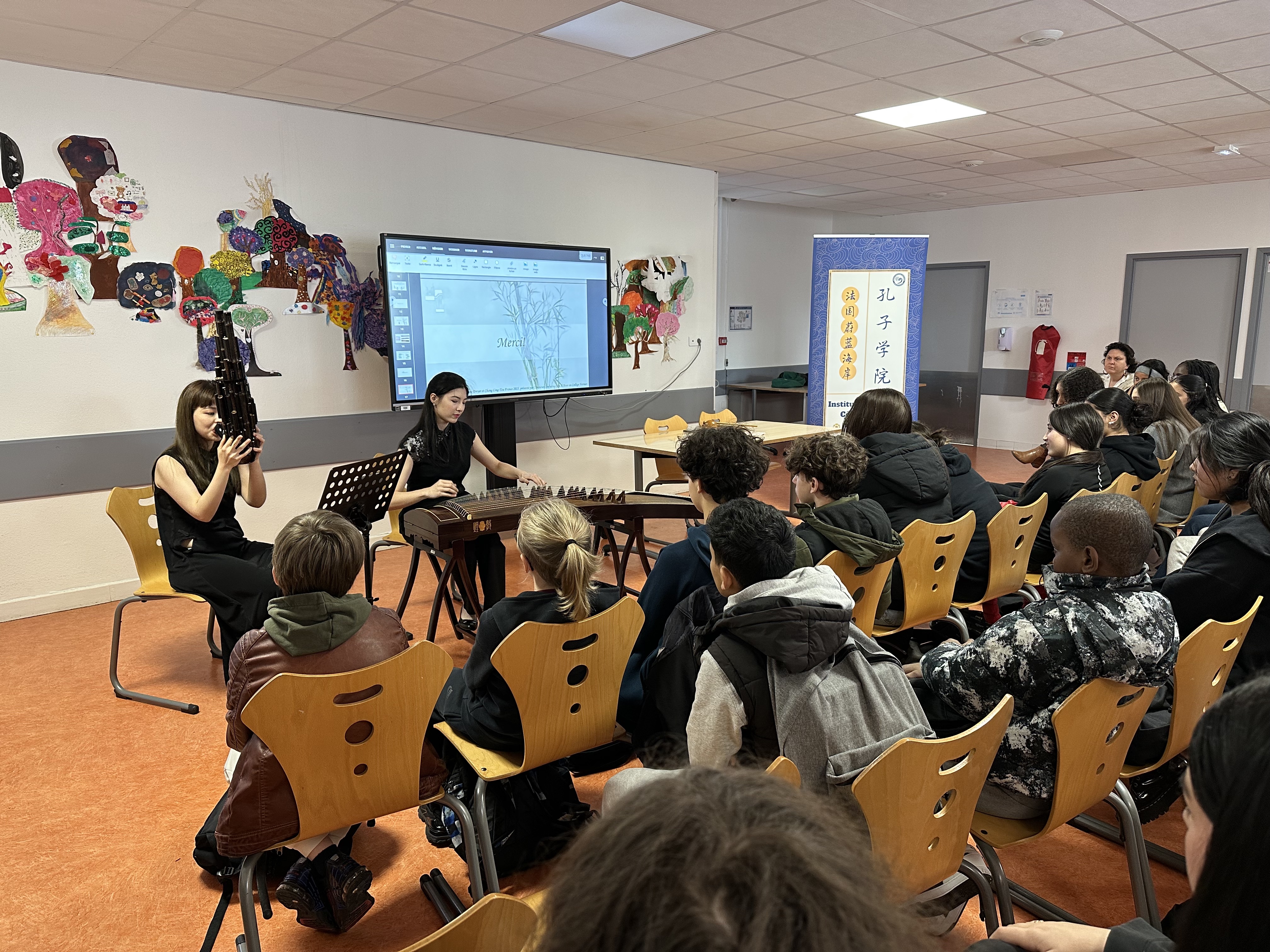 为促进中国与法国及摩纳哥的文化交流,增进当地青少年对中国传统音乐的了解,法国蔚蓝海岸孔子学院于当地时间1月21日至24日期间,特邀上海音乐学院硕士研究生李力安(Léane DREYER)和张玲慈(CHANG Ling-Tzu)在尼斯和摩纳哥多所知名中学开展中国传统音乐巡演活动。