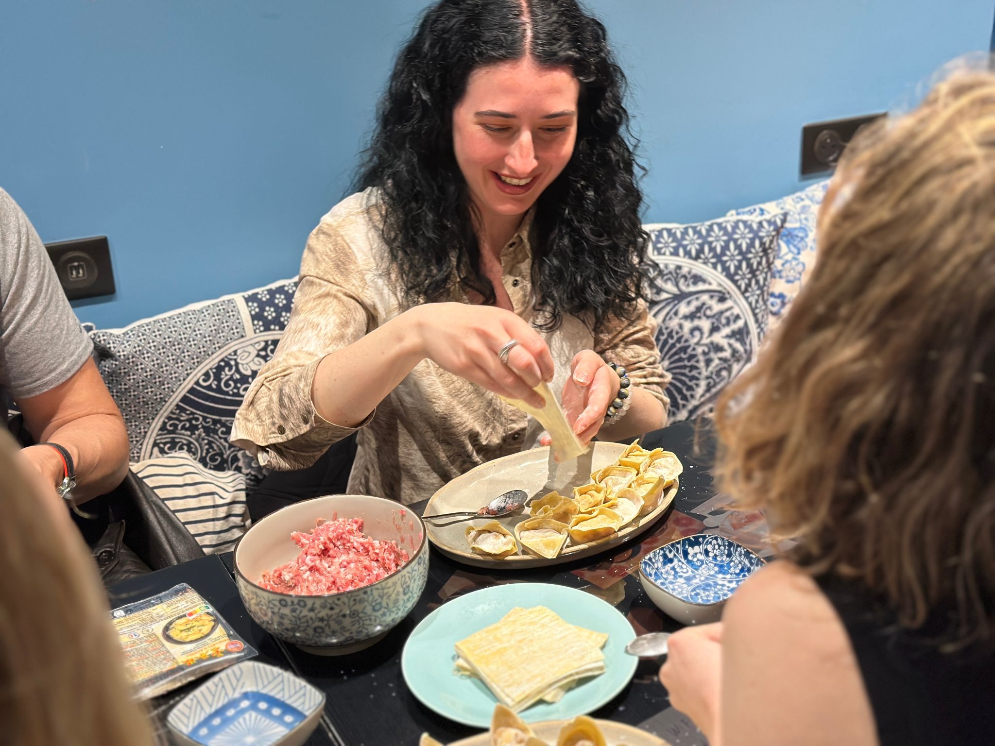 活动当天,米与蜜餐厅内洋溢着欢声笑语。在专业厨师的指导下,参与者们兴致勃勃地学习了制作四川抄手的全过程。从肉馅调制的技巧到抄手成型的手法,每一个环节都令大家啧啧称奇。许多参与者表示,这是他们第一次亲身参与中国传统面食的制作,既新奇又充满乐趣。有人甚至拿起笔记本,详细记录每一个制作细节。