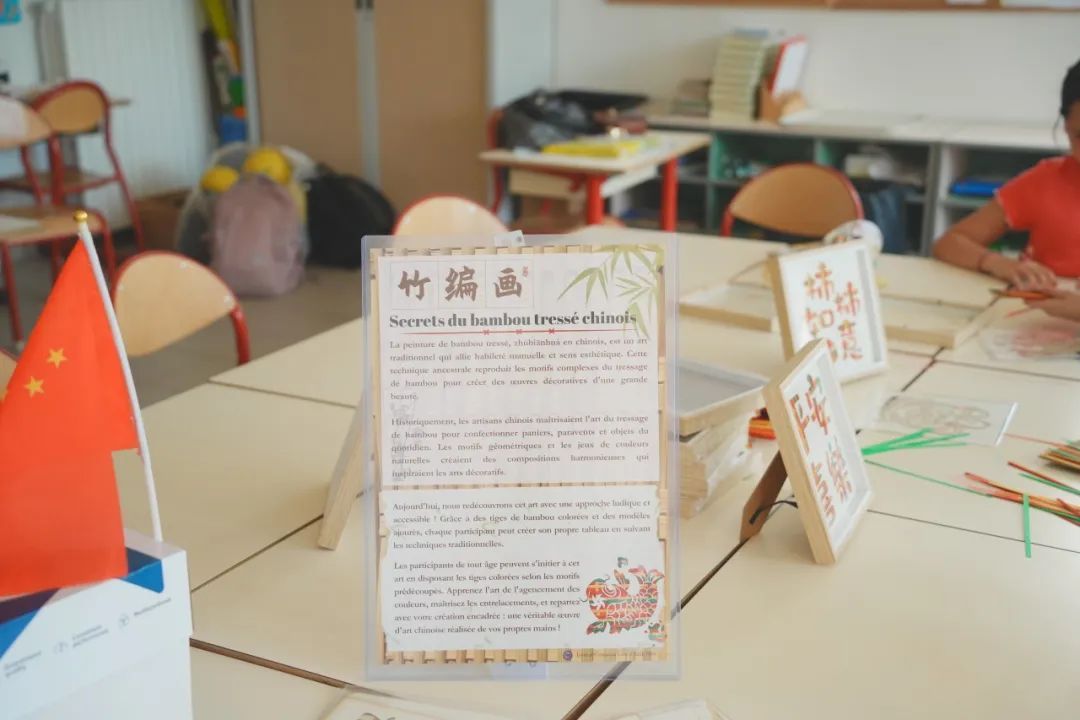 今年新增的竹编画制作环节成为活动的一大亮点。作为中国传统非物质文化遗产,竹编艺术以其独特的编织技法和自然材料展现出别样的美感。在孔院老师的悉心指导下,孩子们从认识竹条材料开始,到学习基本的编织手法,再到创作属于自己的竹编画作品,首次全面接触和了解这项古老技艺。