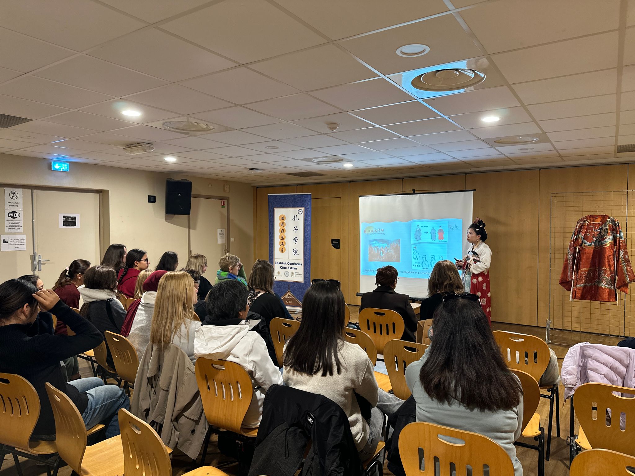 11月29日下午,蔚蓝海岸孔子学院在尼斯加里波第协会之家成功举办”中式古典雅韵”汉服与传统妆造文化体验活动。本次活动特邀巴黎著名的汉服协会木瓜社社长刘静女士担任主讲嘉宾,吸引了50余名中国文化爱好者踊跃参与。