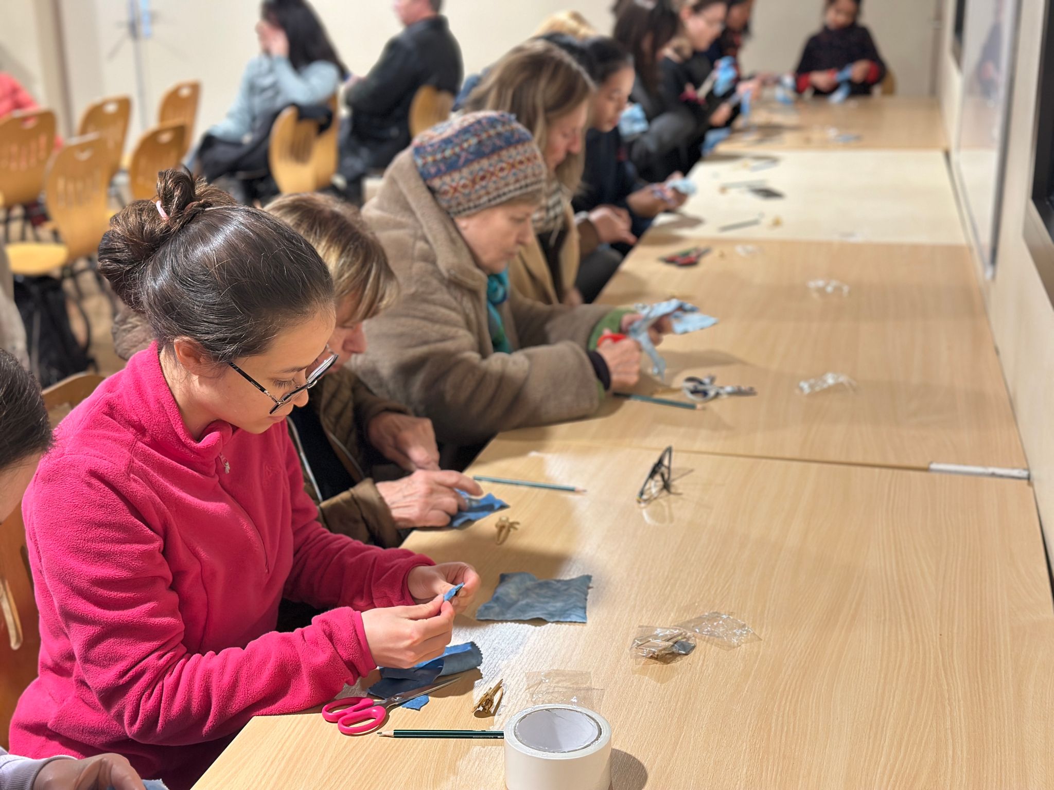 图四:参与者们专注制作扎染布艺发夹
