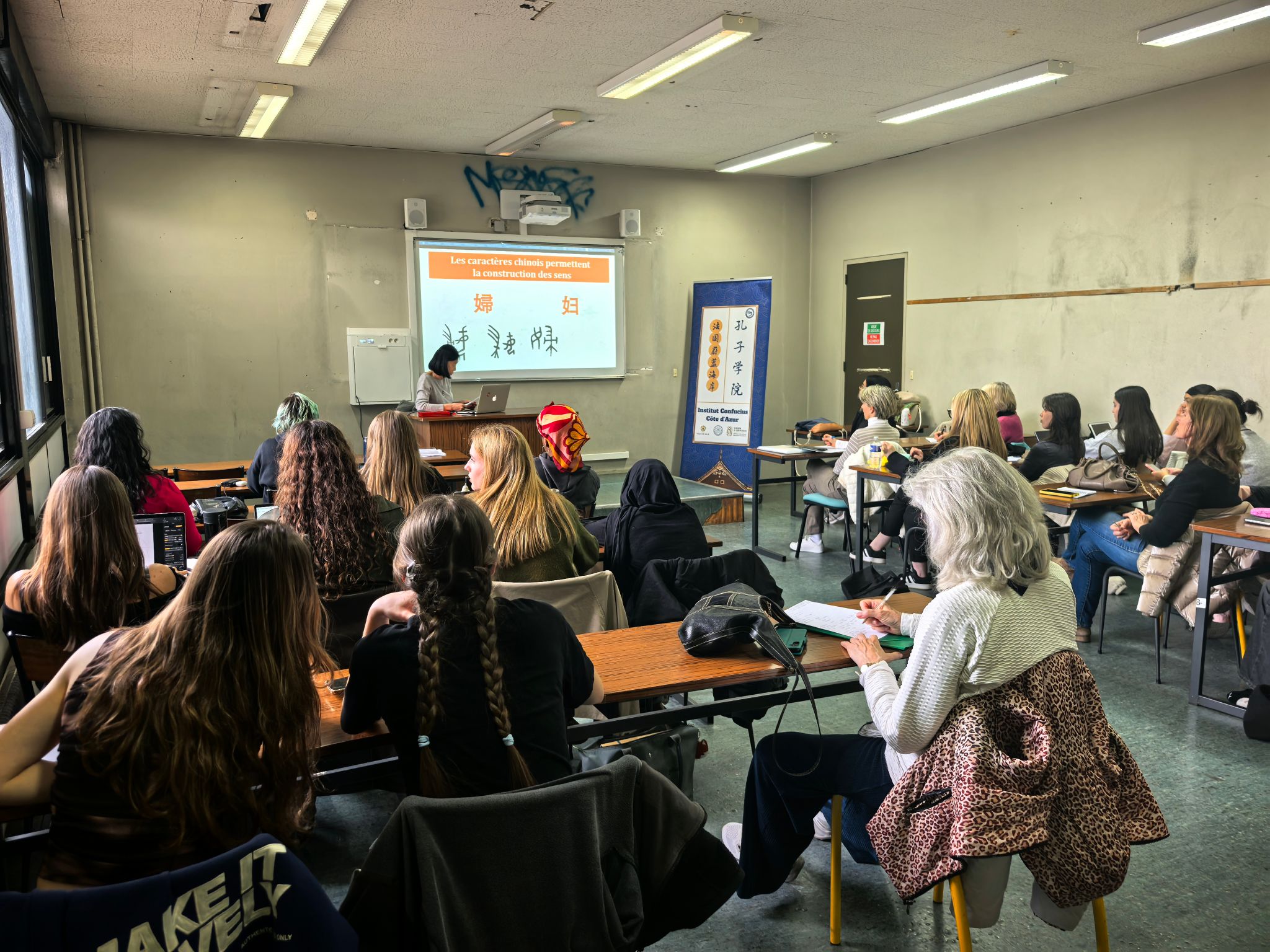 当地时间3月6日,在国际劳动妇女节来临之际,法国蔚蓝海岸孔子学院理事会秘书长黄晓敏(Xiaomin GIAFFERRI)受邀走进蔚蓝海岸大学(Université Côte d’Azur),带来《汉字中的女性》专题讲座。该校中文系学生,以及一众对中国文化感兴趣的法国民众共40余人到场聆听,共同探寻汉字背后蕴藏的性别文化与历史底蕴。