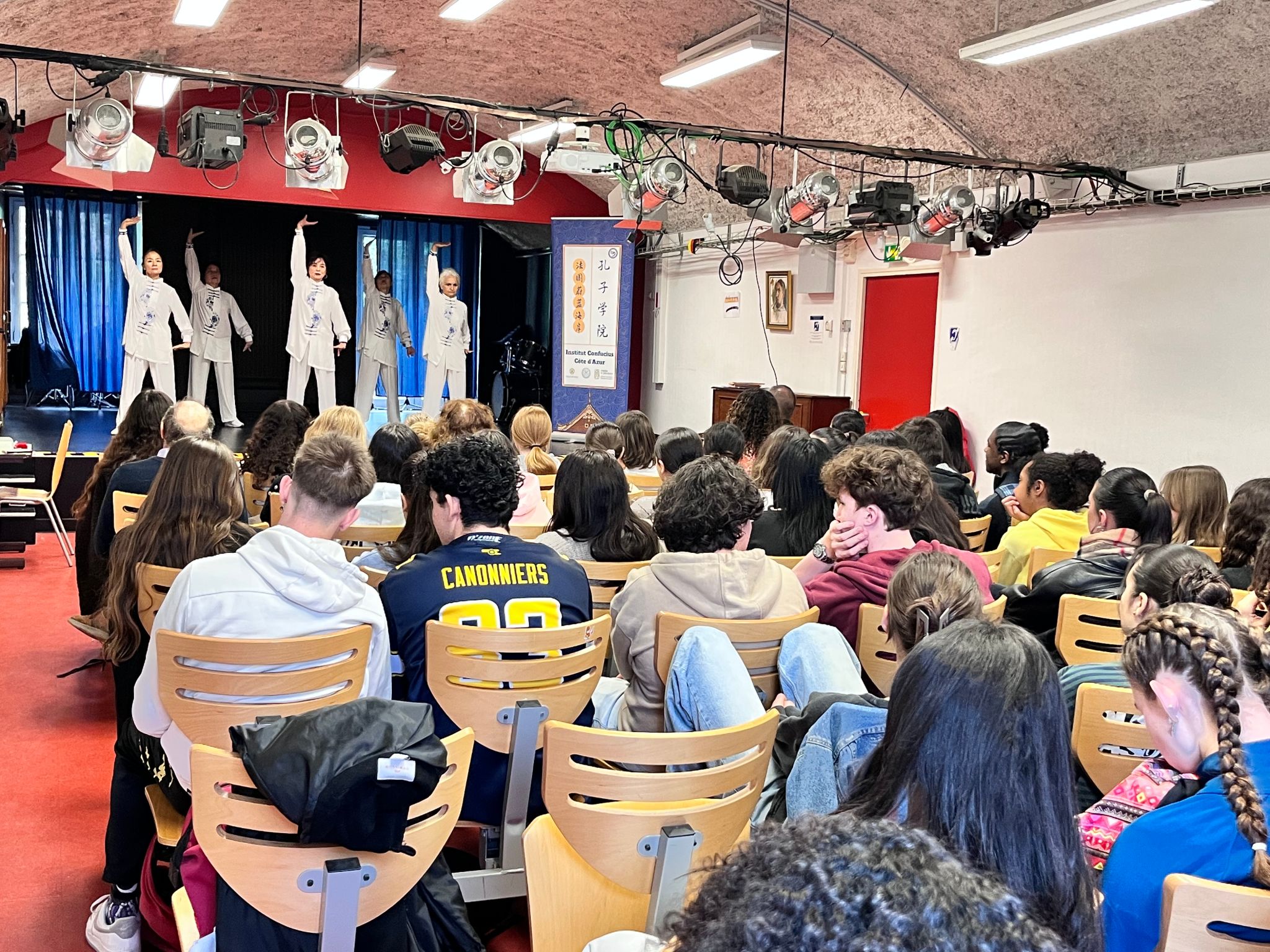 当地时间3月18日,法国蔚蓝海岸孔子学院联合马赛普罗旺斯—中国交流协会(Association Relais Provence Chine de Marseille),在法国土伦市(Toulon)波拿巴高中(Lycée Bonaparte)举办中国文化日主题活动,为该校五十多位师生带来一场沉浸式中华传统文化体验,以太极扇、八段锦、舞蹈与美食为媒,搭建法国青少年了解中国的平台。