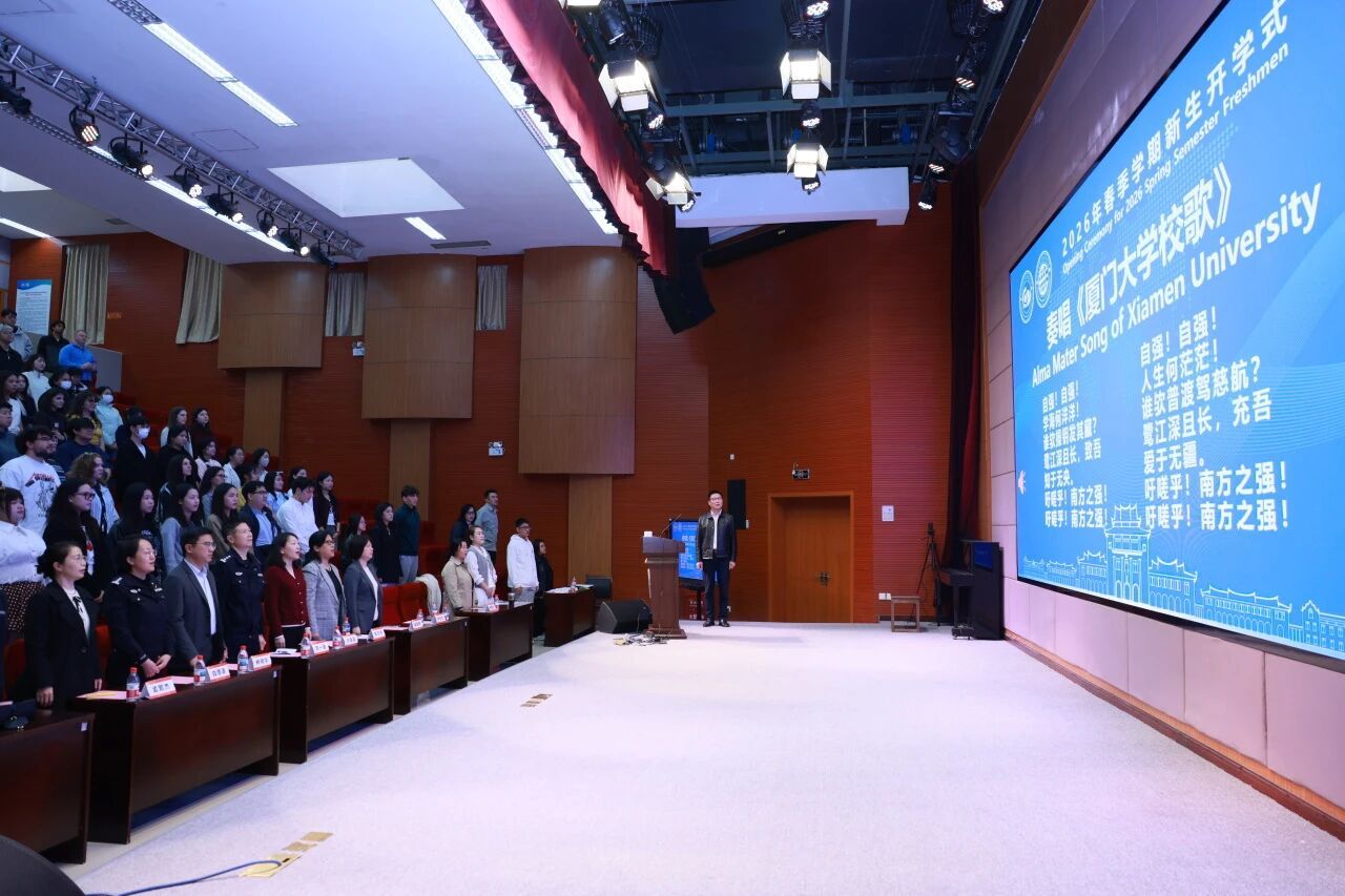 典礼最后,全体师生共同唱响厦门大学校歌,悠扬的旋律在会场内久久回荡,传递着全体师生的期许与祝福,开学典礼在庄重而热烈的氛围中圆满落幕。