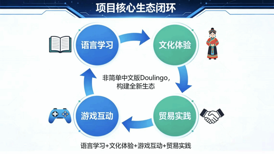 获奖项目《丝路・西游词行记》依托我院国际中文教育专业优势,以海上丝绸之路为背景,打造独具特色的 “语言+文化+教学+游戏” 四位一体融合模式,将闽南非遗、海丝历史等文化元素融入游戏内核,构建“线上游戏+线下文旅”的玩法闭环,契合国际中文教育数字化发展趋势,也为中华文化国际传播探索了新形式。2025级研究生万钦煊担任项目负责人,崔宗旺、柴莹莹、孙明鑫、张轩齐、蒲雪婷等同学联合管理学院、信息学院同学组建成跨学科复合型团队,孟繁杰教授、吕伯宁副教授、张灵芝副教授及团委书记白沚凡担任指导老师。