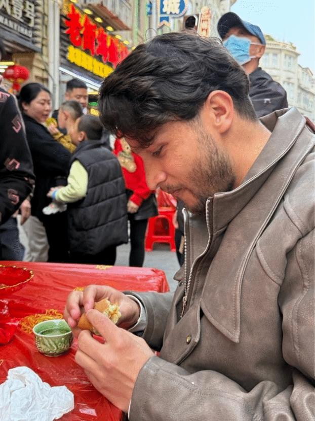 人声鼎沸,暖意融融。在厦门日报社国际传播中心的安排下,同学们来到厦门中山路镇邦路,参与“茶桌仔”与“流水席”系列新春民俗体验活动。活动中,大家围坐骑楼茶桌旁,亲身体验闽南茶道,品尝贡糖、炸枣等闽南特色茶歇。来自马来西亚的蔡顺茗同学感慨道,中文名字里的“茗”字让她与中国茶结缘,在这里品茗听乡音,倍感亲切;晚间,大家围坐流水席前,品尝姜母鸭、土笋冻等闽南美食,了解流水席的民俗内涵,尼日利亚的舒畅同学通过视频连线向远方家人分享这份喜悦,尼泊尔的杨帆同学则对土笋冻的独特风味赞不绝口,同学们在茶与美食的交融中,沉浸式领略中华春节文化的深厚底蕴,真切感受闽南民俗的独特韵味。