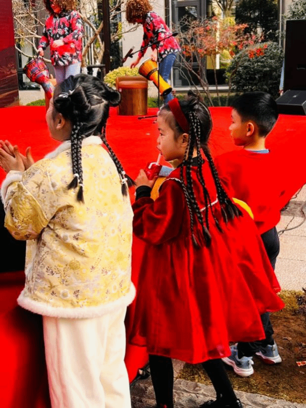 烟火氤氲,邻里相融。依托共建资源,同学们走进建发五缘映月社区,深入中国人的日常生活场景,参与小区新春系列民俗体验活动。同学们在社区内参与集福运活动,领取分发的糕点,感受新春福运的美好;随后走进享福铺年味集市,沉浸式体验各类年味摊位,在热闹的集市氛围中捕捉中国年的烟火气息;晚间,大家前往中庭广场,观看居民自发举办的“小区春晚”,现场鼓声铿锵、歌声嘹亮。退休阿姨们演奏的非洲鼓曲目吸引了非洲留学生沙米勒,他感慨道:“这乐器太熟悉了,从没想过会出现在中国的小区里,看到阿姨们热情演奏,很新奇也很有趣。”这场由居民全程“一手包办”的晚会节目丰富多样,沙米勒和同学们在邻里的温情与欢声笑语中,近距离触摸中国家庭的春节烟火温情,深刻体会到中华民俗文化中的邻里情谊。